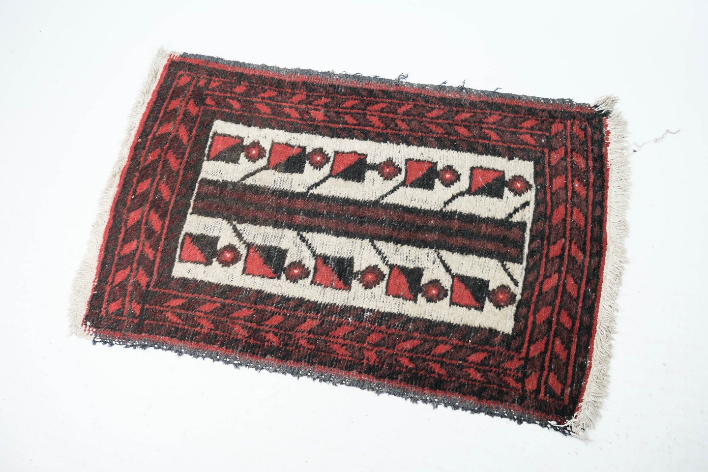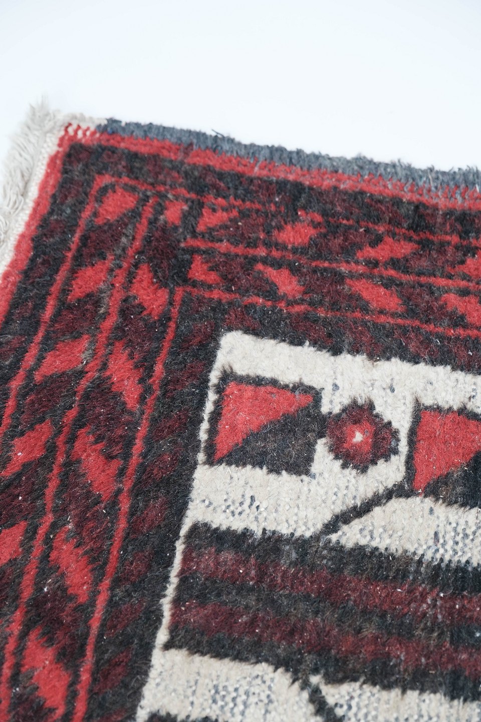 Ægte tæppe i røde og hvide farver, i flot brugt stand fra 1960erne.