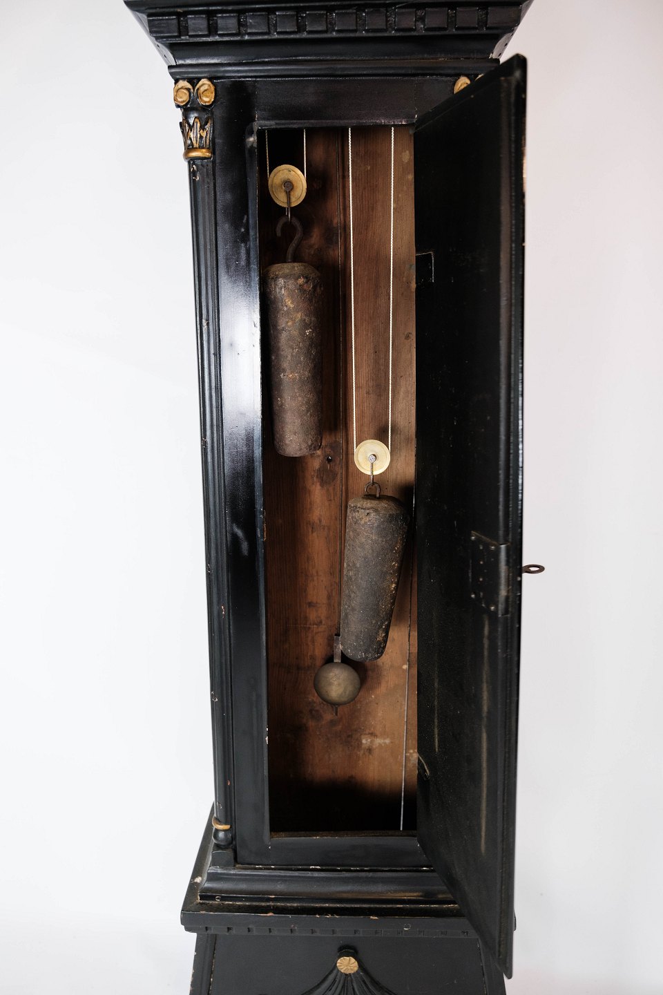 Bornholmerur, model Frøken, af sort malet træ, i flot antik stand fra 1790erne.