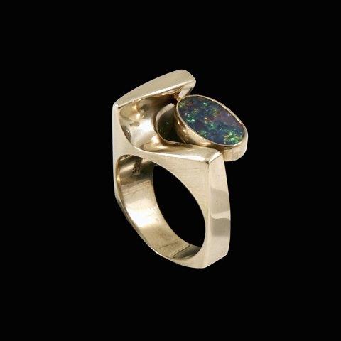 Frank Ahm. Danish 14k Gold Ring with Opal.