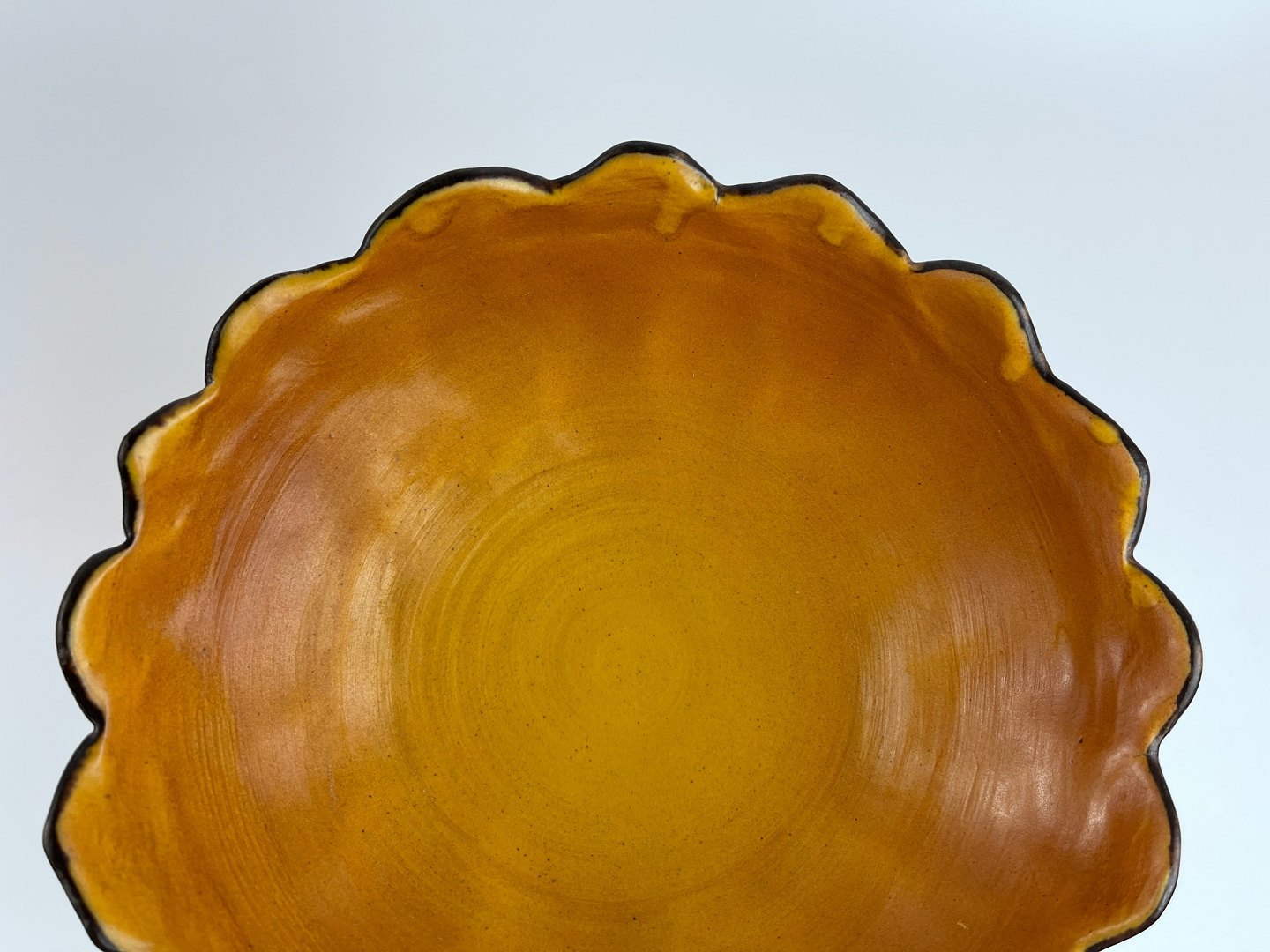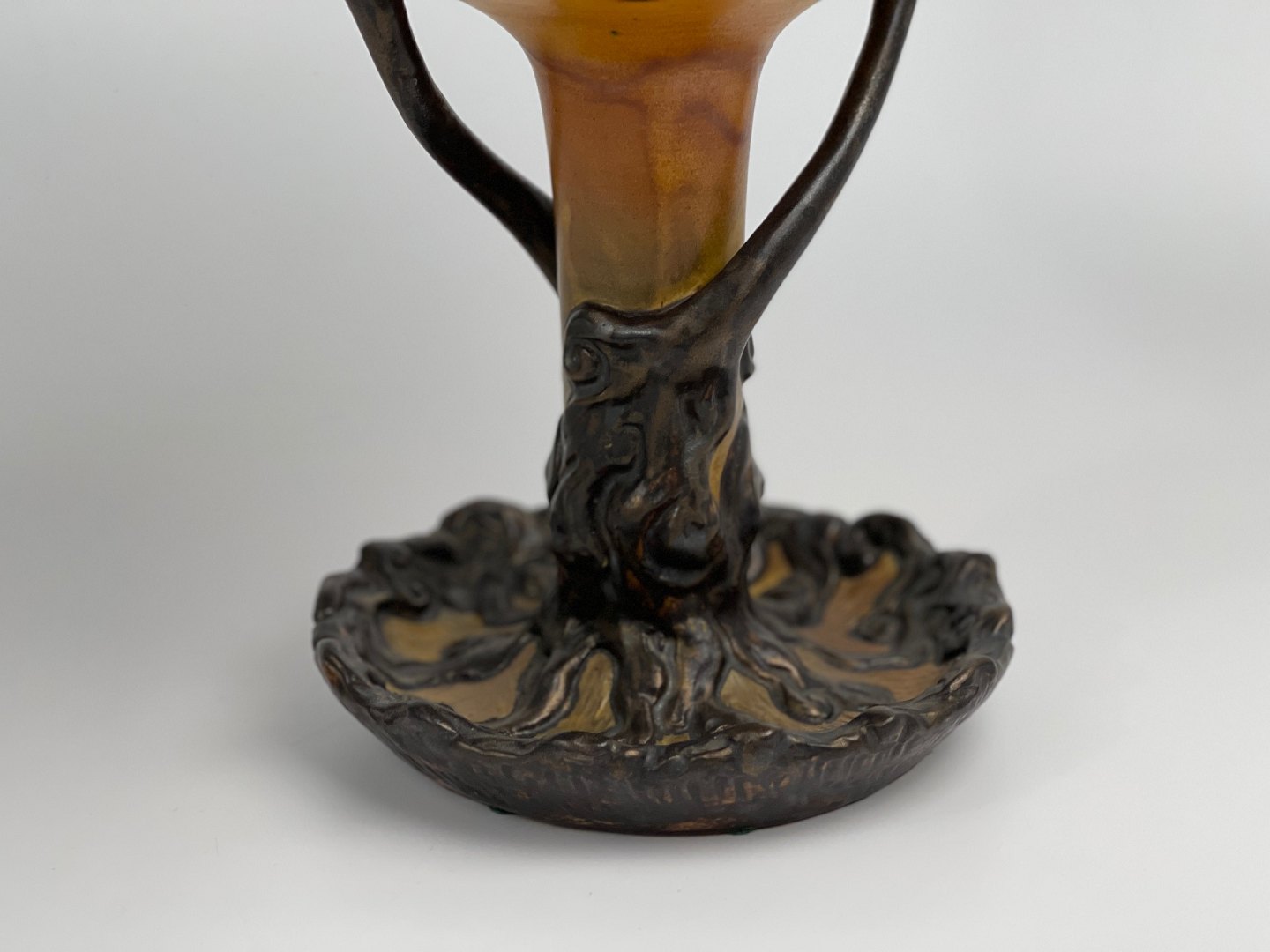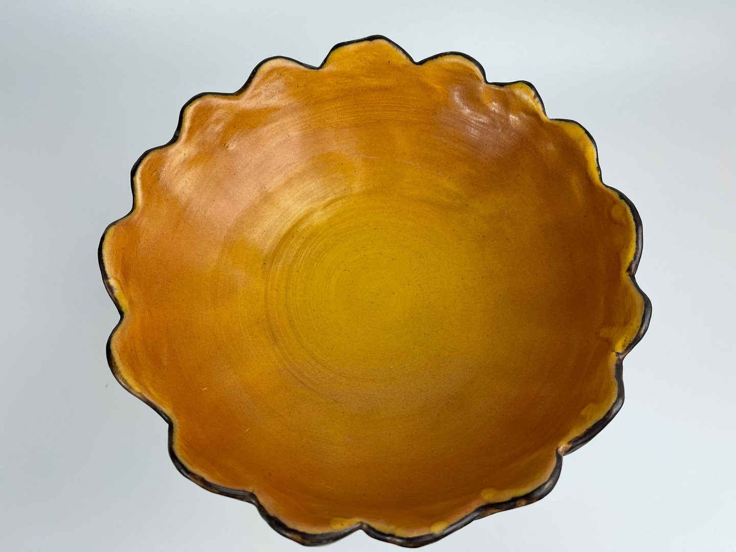 Art nouveau / skønvirke skål på fod fra P. Ipsens Enke's kgl. Hof Terracottafabrik. Skålen er designet af Axel Jensen og produceret fra 1915-1941.