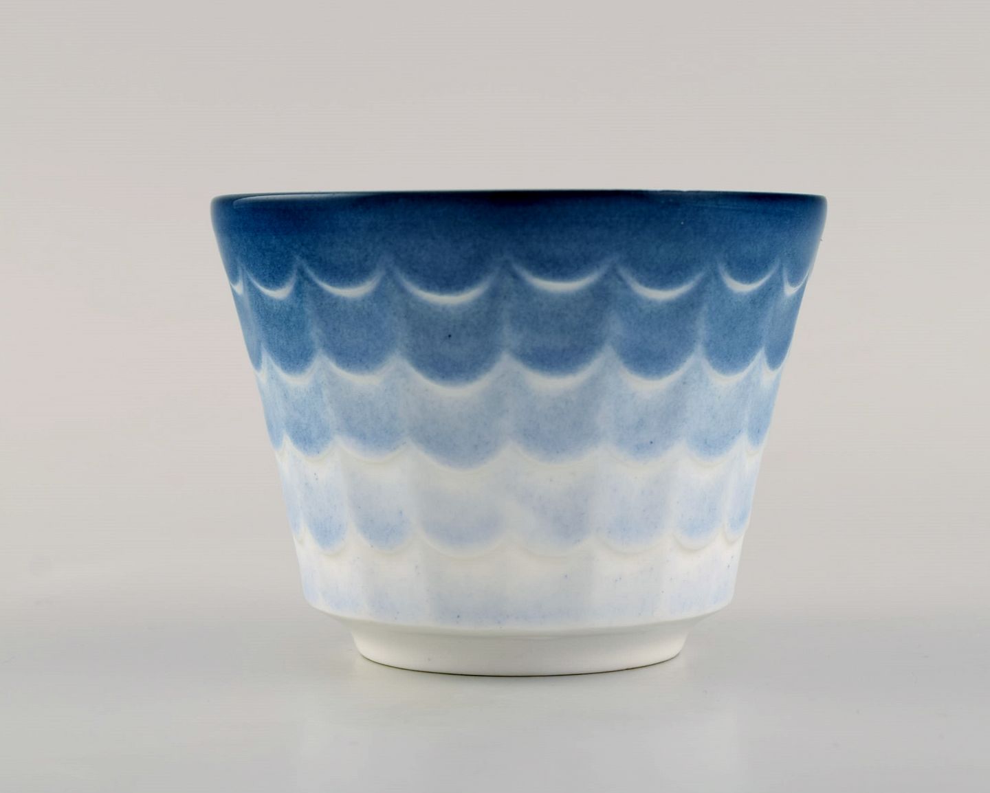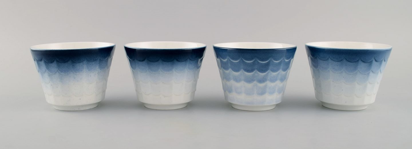 Wilhelm Kåge for Gustavsberg. Four flower pot covers in porcelain. Swedish design, 1960s.