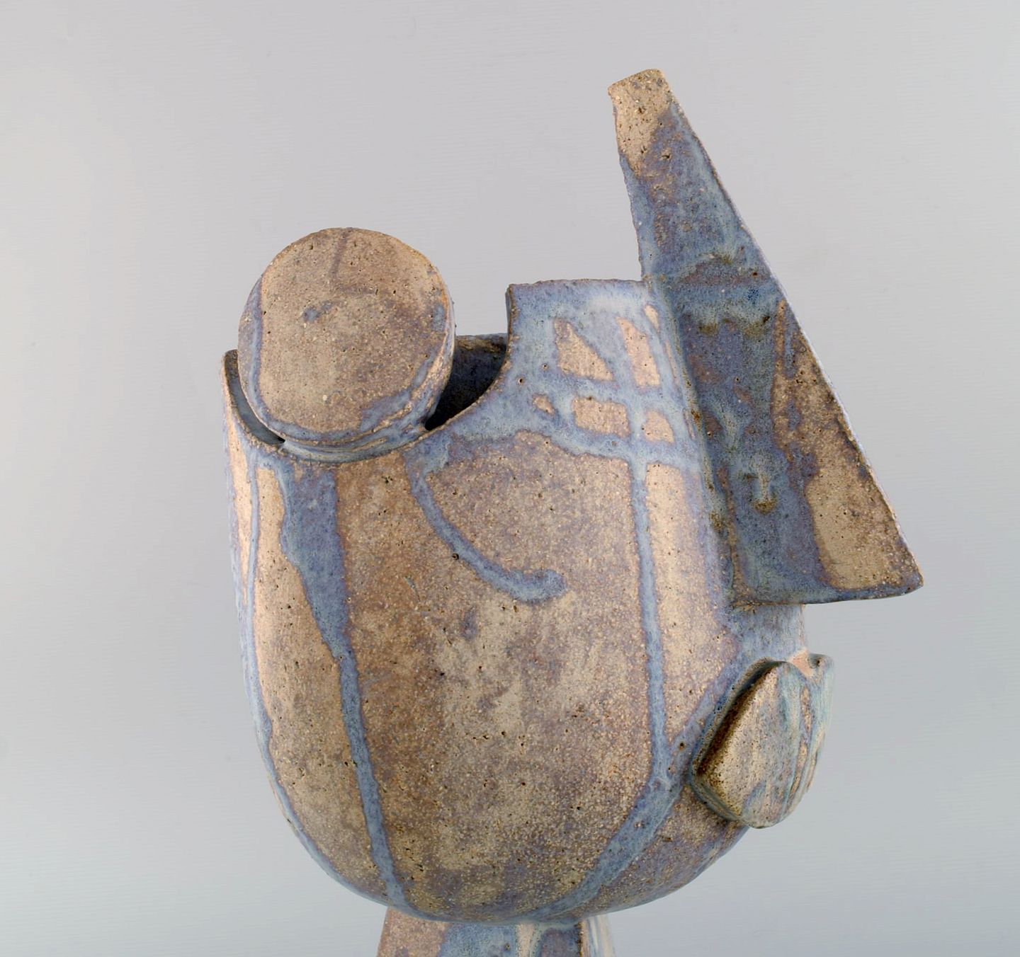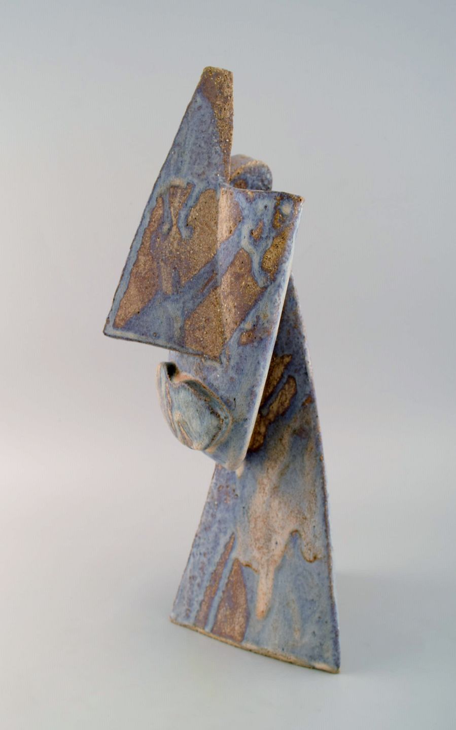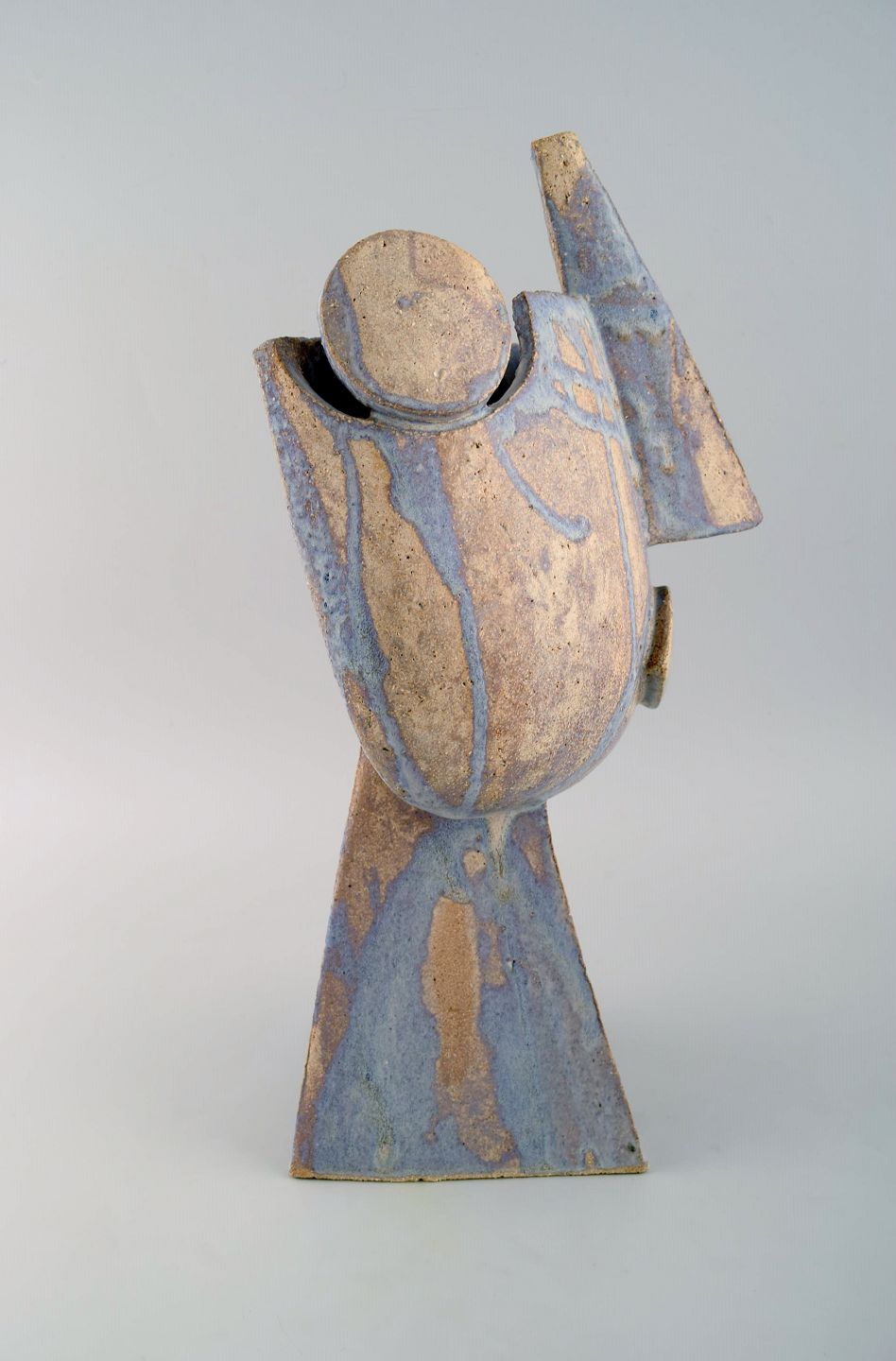 Christina Muff, dansk samtidskeramiker (f. 1971). Stor kubistisk unika skulptur i gyldent stentøjsler med silkemat glasur. "Blow us a kiss".