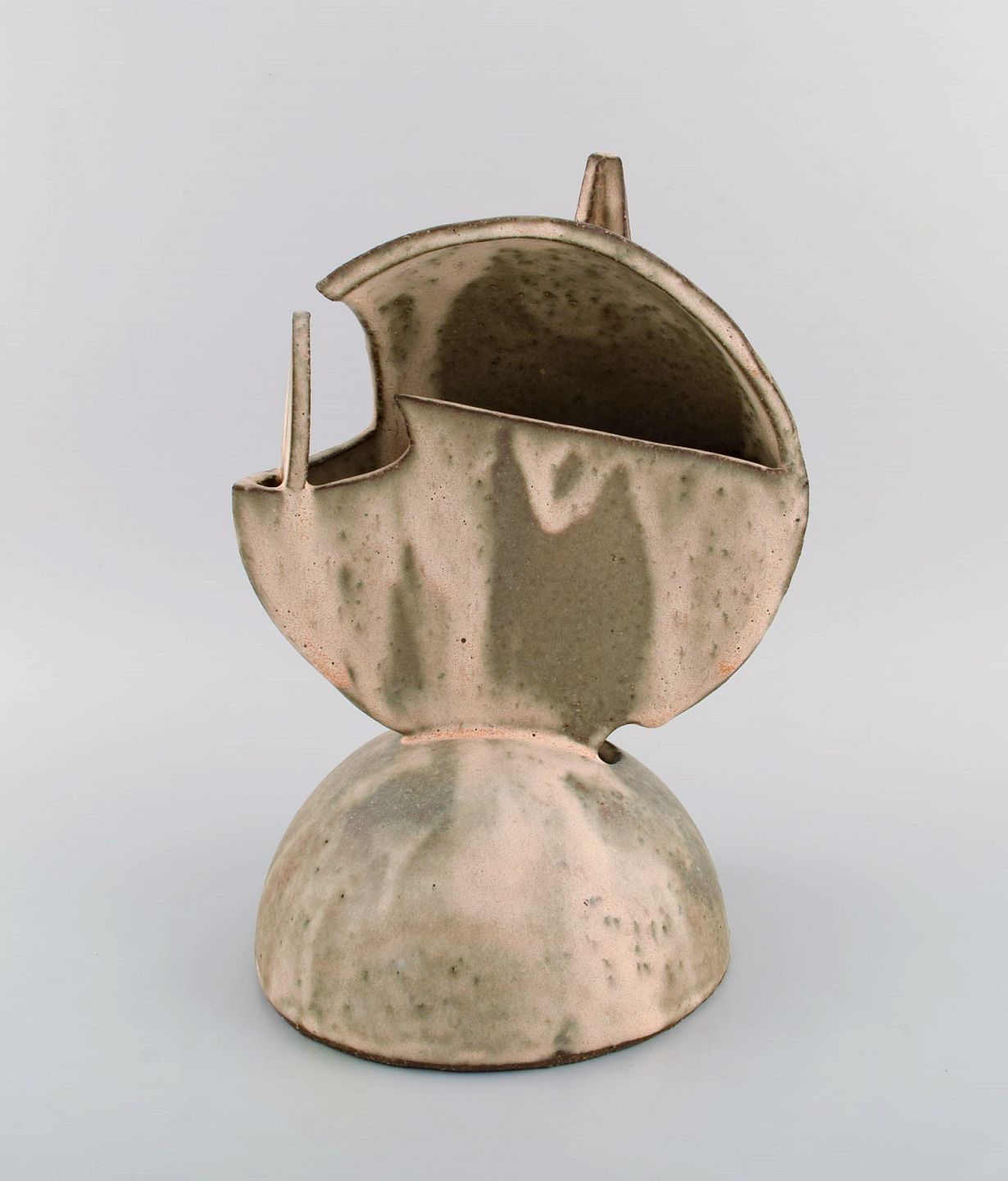 Christina Muff, dansk samtidskeramiker (f. 1971). Stor kubistisk unika skulptur i glaseret stentøjsler. "Good things comin round". Smuk glasur i sand nuancer.