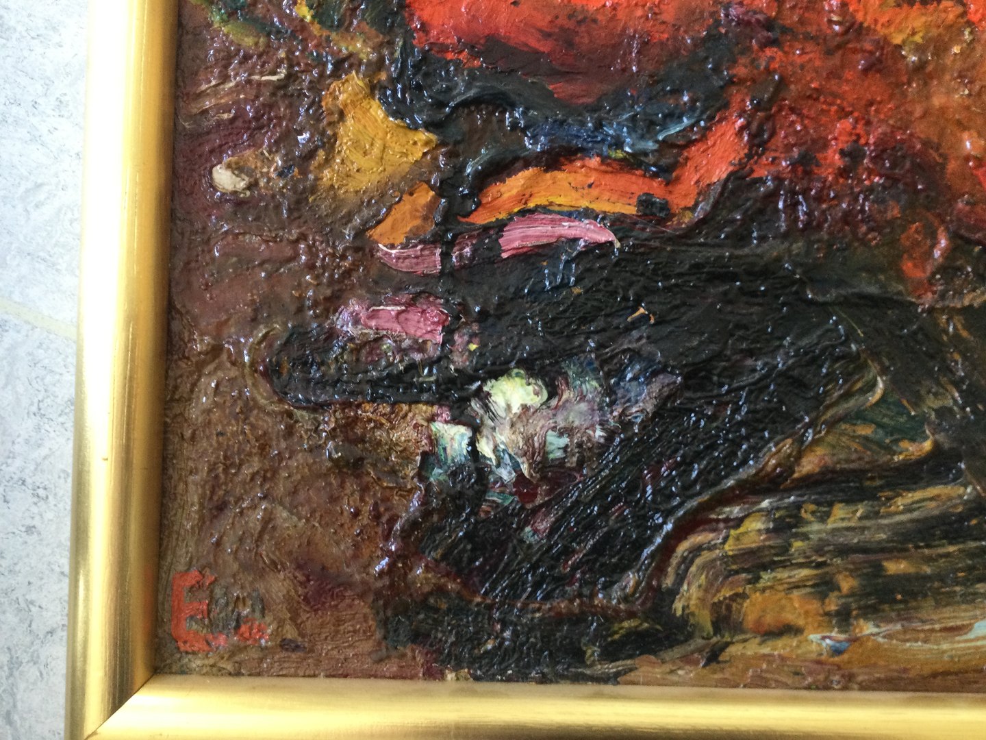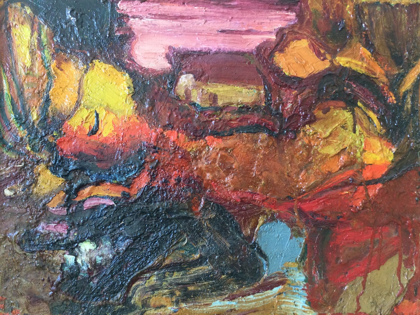 Olie på plade monteret på lærred.