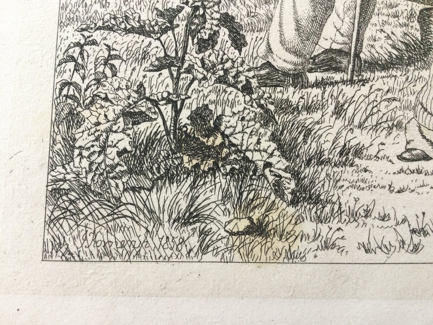 Radering af Jacob Kornerup 1858 - Skånske Bønder på Kirkegården.