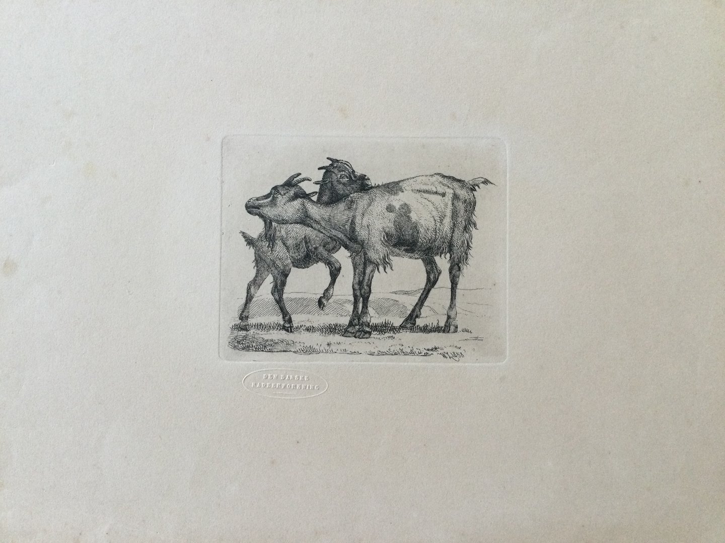 Radering fra DDRF af Johannes Vilhelm Zillen 1858 - 2 geder.