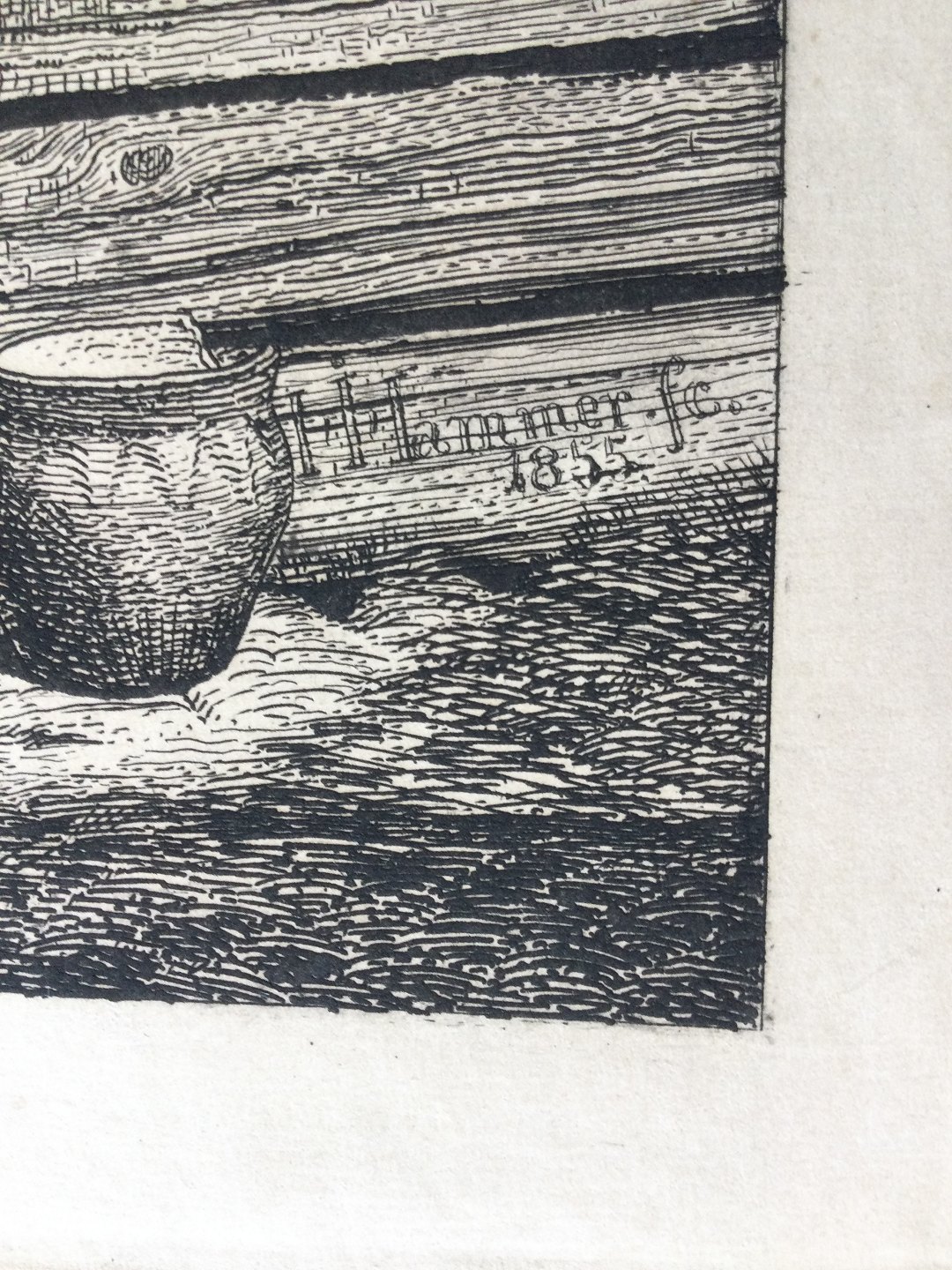 Radering fra DDRF af Hans Jørgen Hammer 1856 - En Husmands familie 1855.