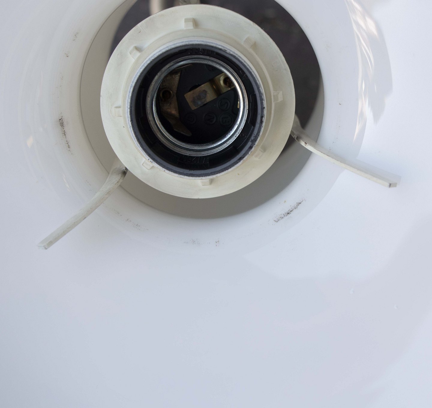 Loftslampe med skærm i opalhvid glas.