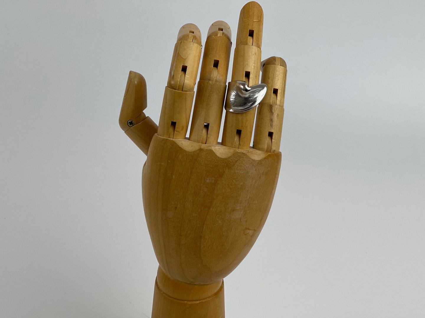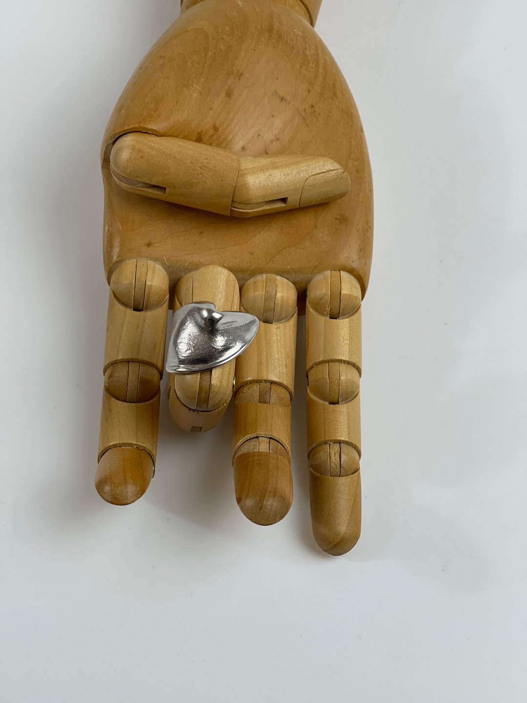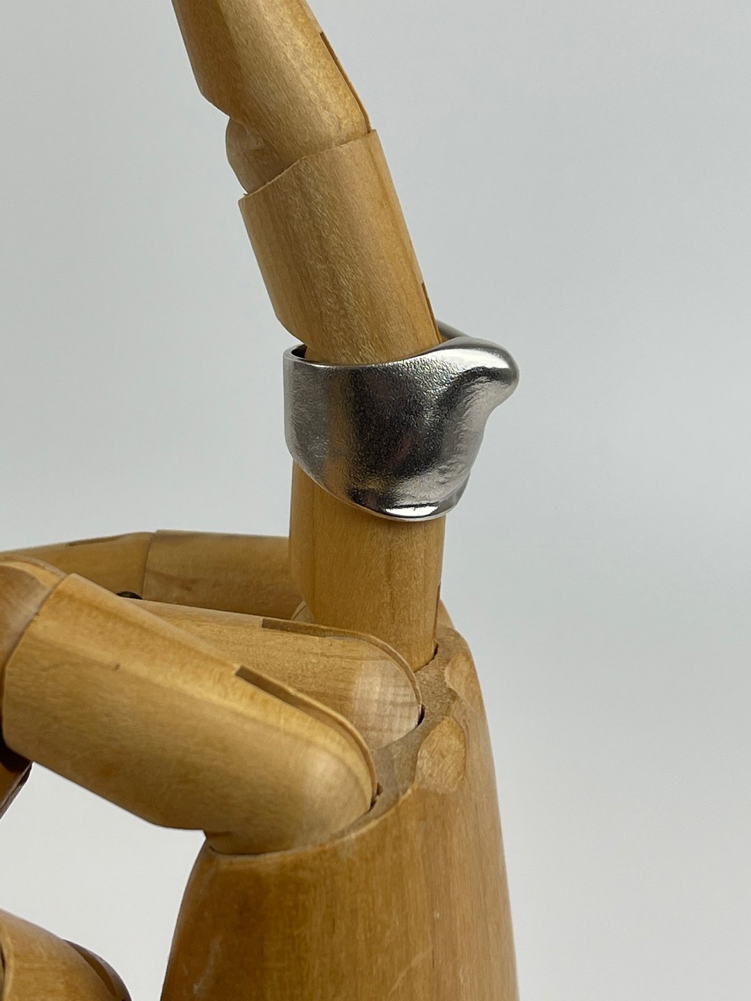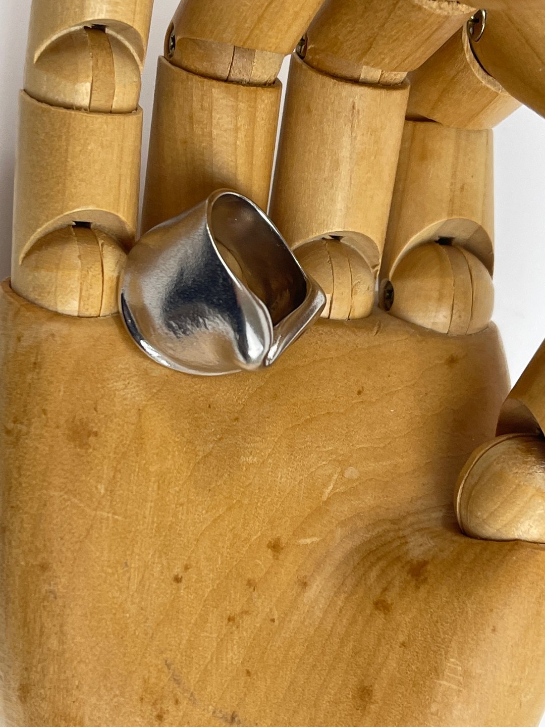 Stor, biomorph sølvring, kaldet "Evolution" fra Toftegaard. Størrelse 54. Designet af Martel Katharina Elisabeth Traudel Toftegaard.