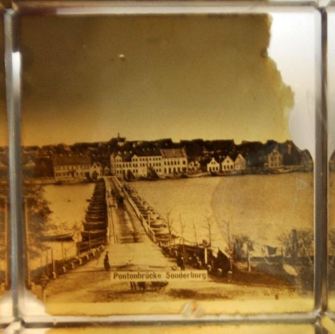 Glas brevpresse, 19. årh. Sønderborg Pontonbro. Danmark.