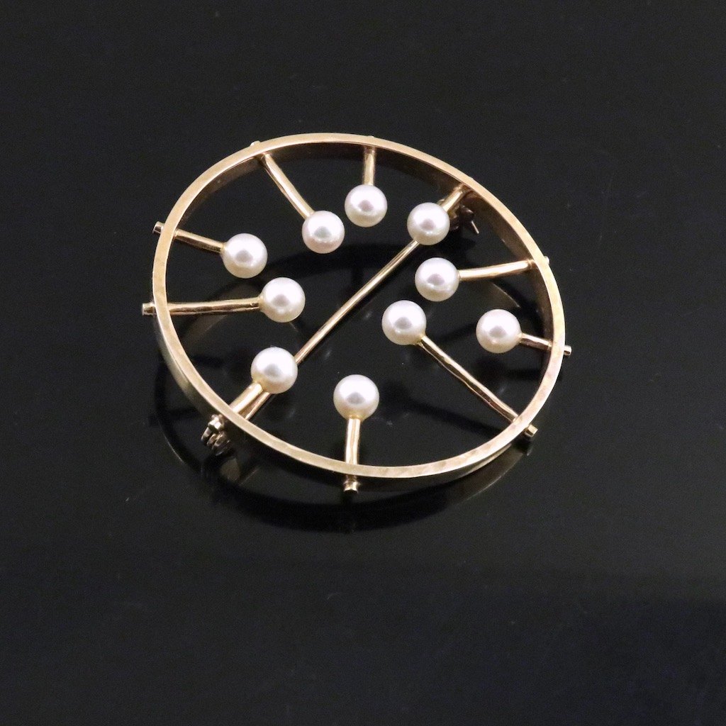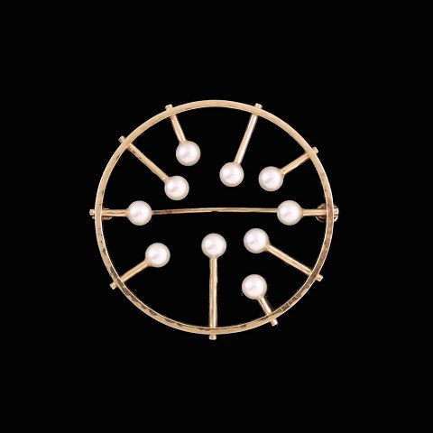 Bent Gabrielsen. Broche i 14k guld med perler.