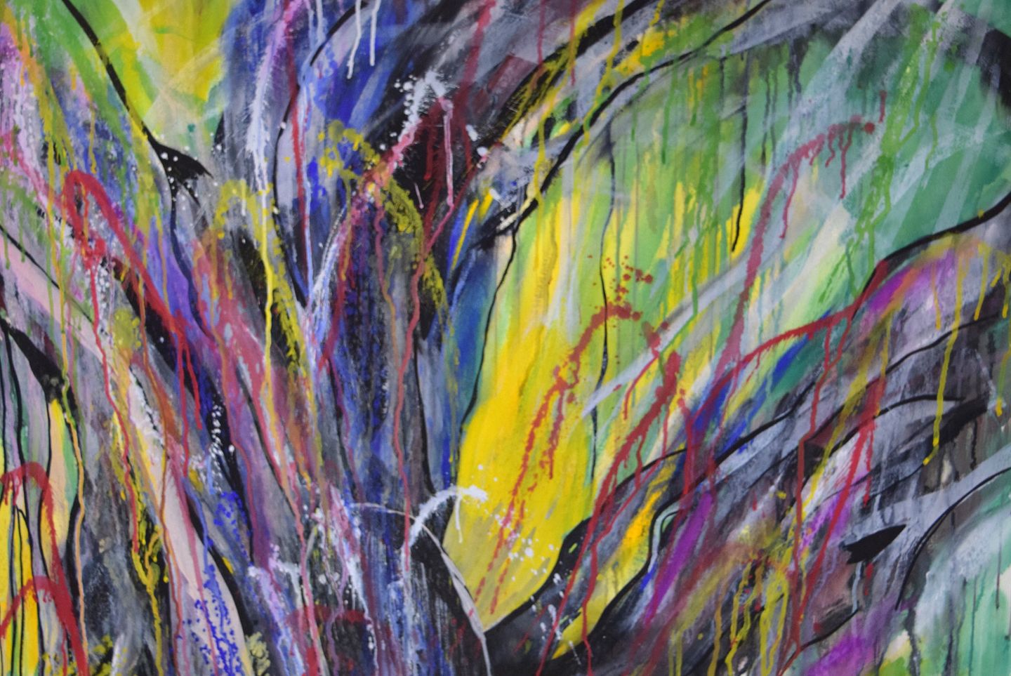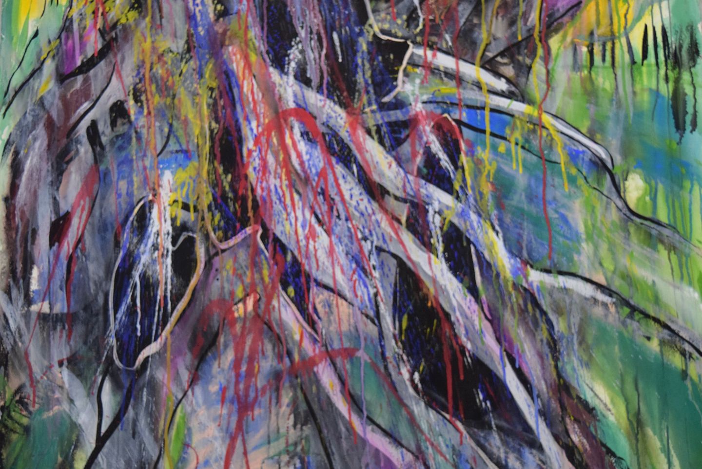 Ivy Lysdal, f 1937. Dansk keramiker og kunstmaler. Mixed media på karton. Stort abstrakt modernistisk maleri. Koloristisk palette. Sent 1900-tallet.
