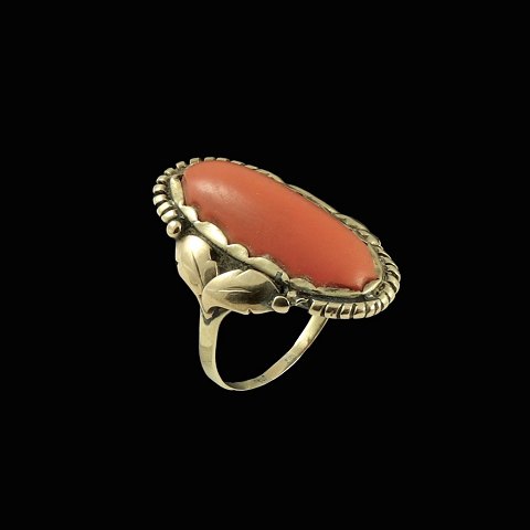 Carl Johan Antonsen. Ring i 14k guld med koral.