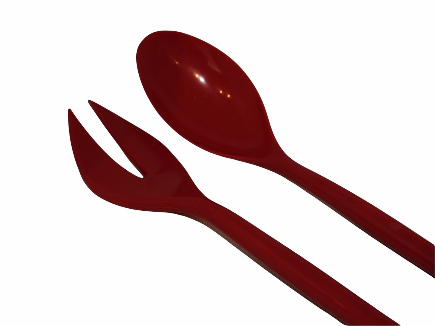 Originalt rødt salatbestik til krenitskåle fra 1950'erne.