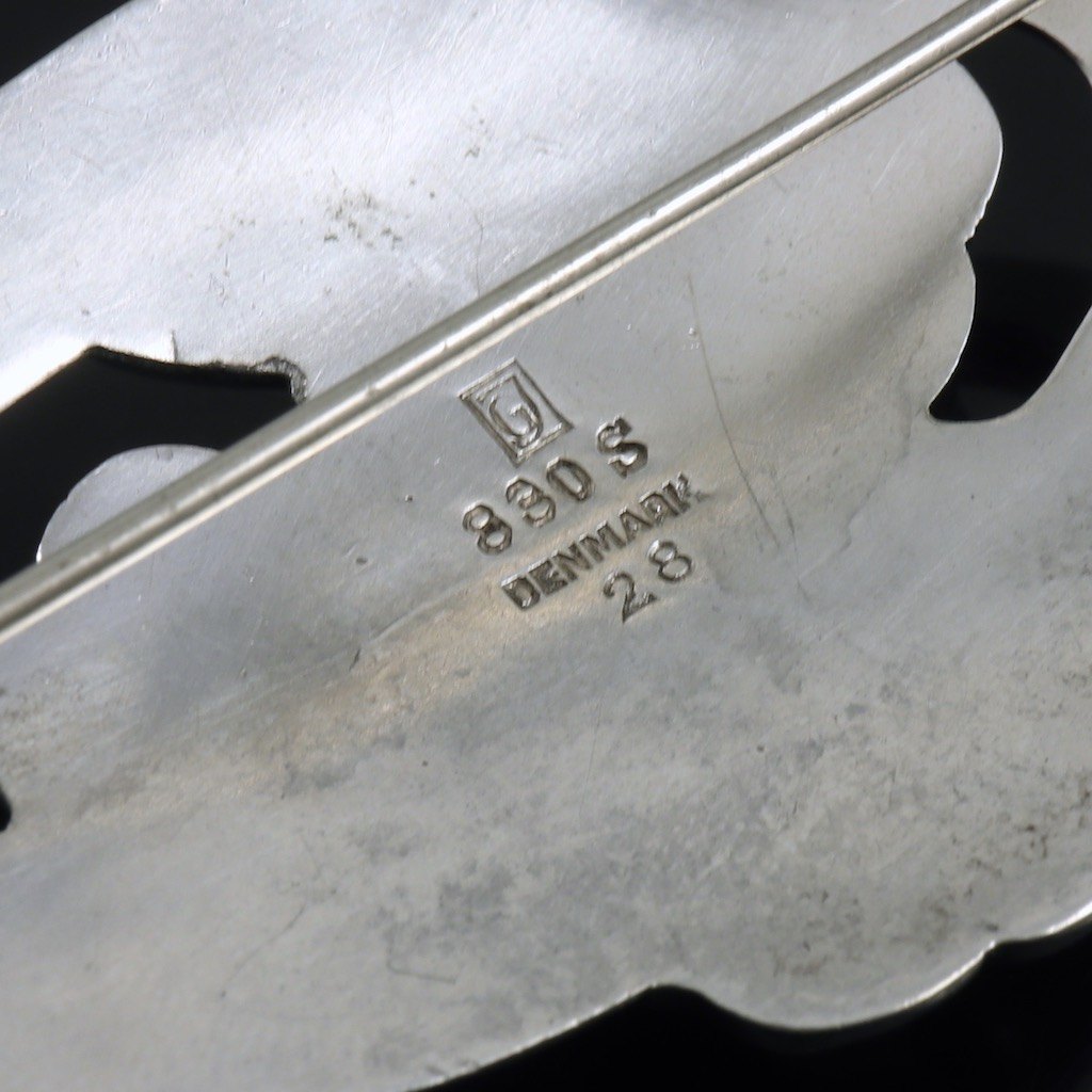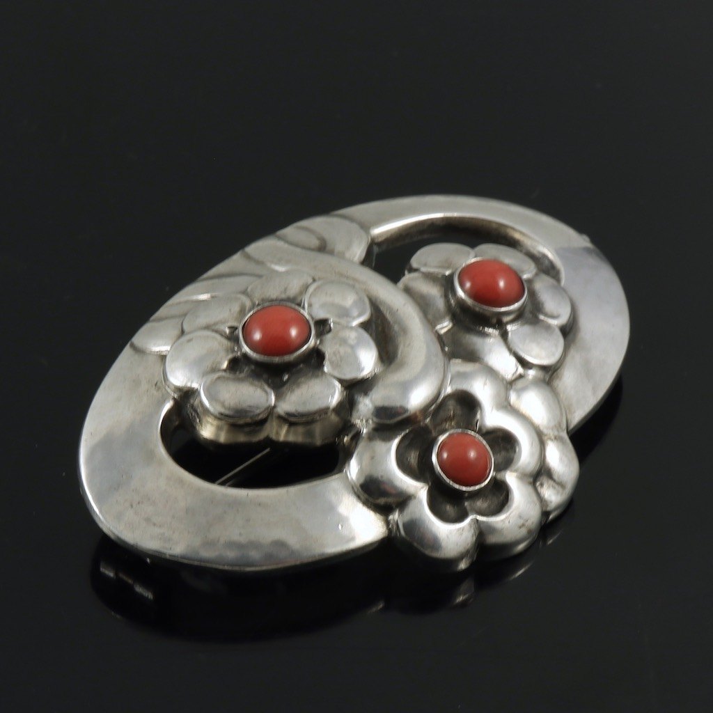 Georg Jensen. Broche i 830 sølv med koral #28.