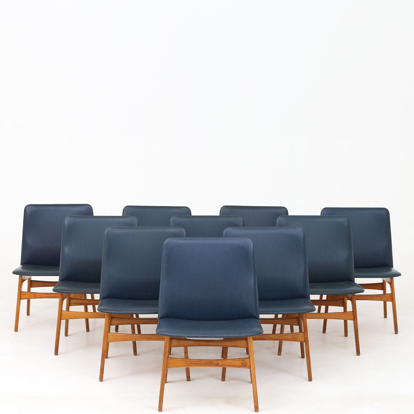 BM 230 - Lænestol med stel af eg og sæde og ryg betrukket i blåt læder. Formgivet i 1954.