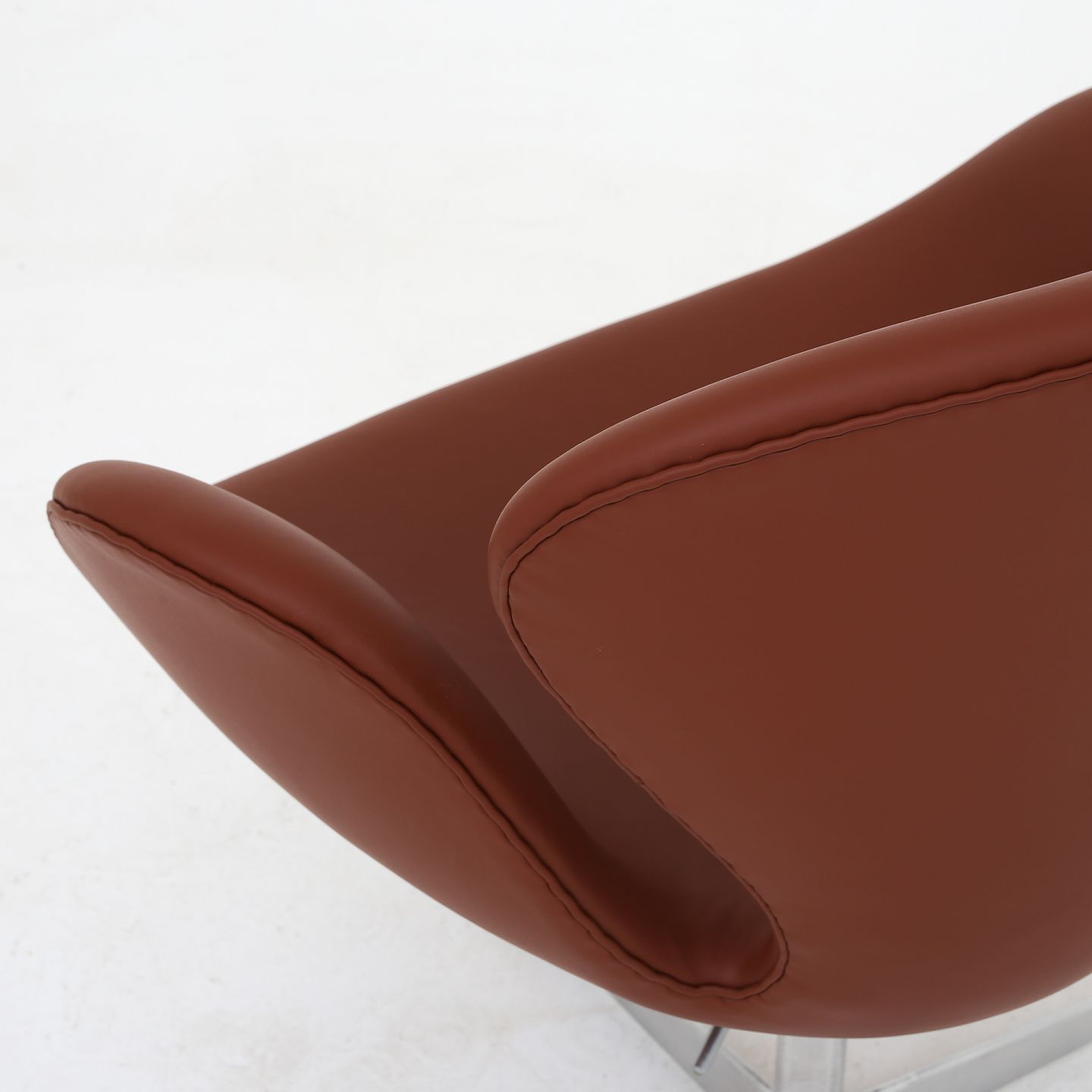 AJ 3220 - Nybetrukket 'Svanen'-lænestol i Savanne-læder (farve: Tan, 30331) med fod af aluminium.