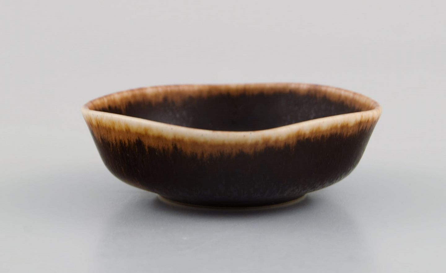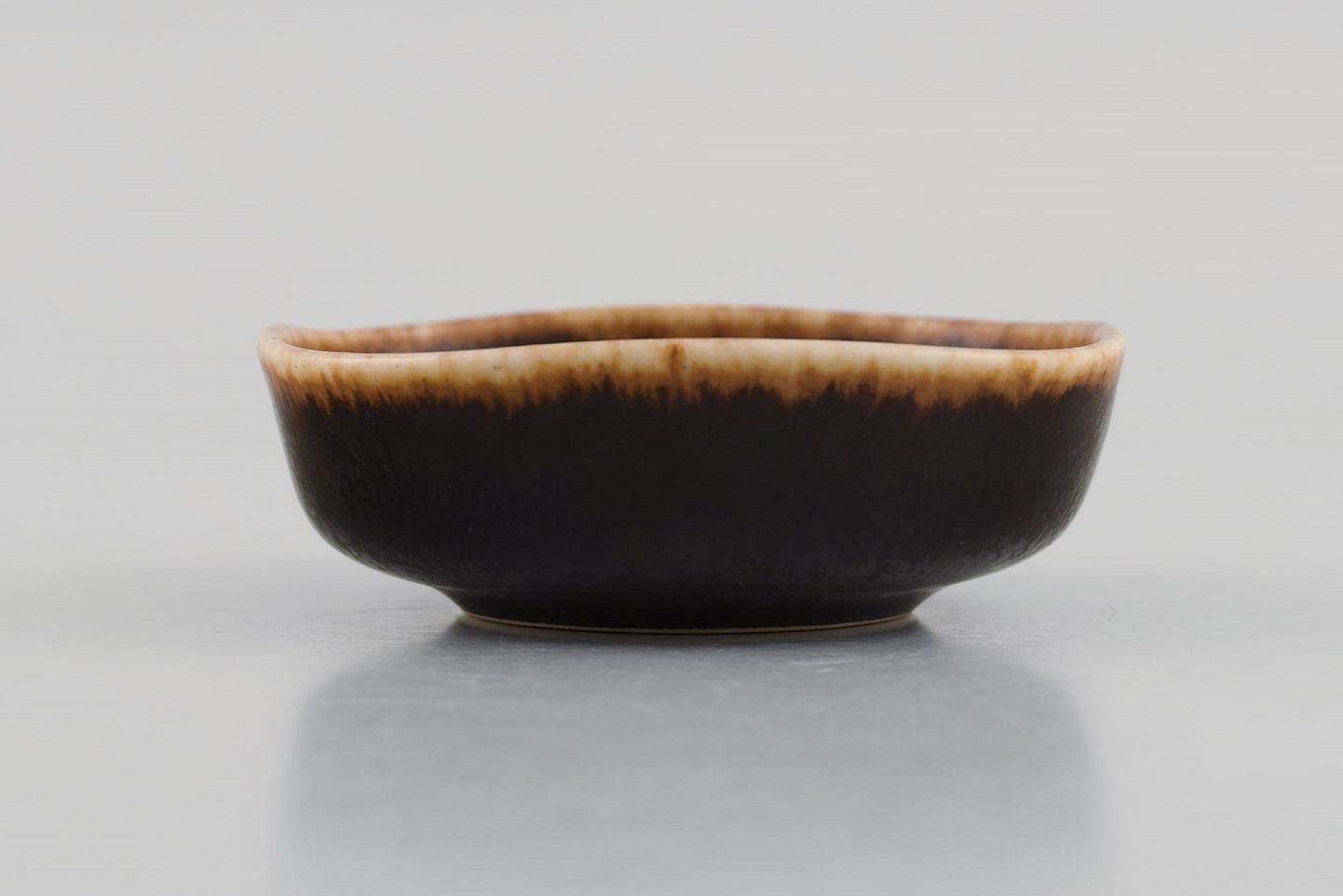 Eva Stæhr-Nielsen for Saxbo. Miniature skål i glaseret stentøj. Smuk glasur i brune nuancer. Midt 1900-tallet.