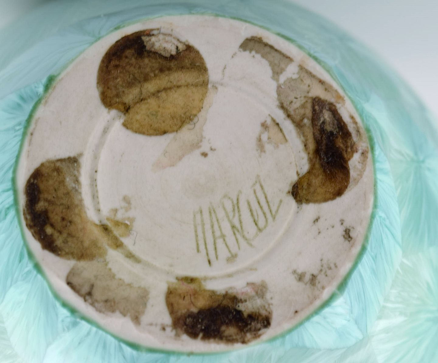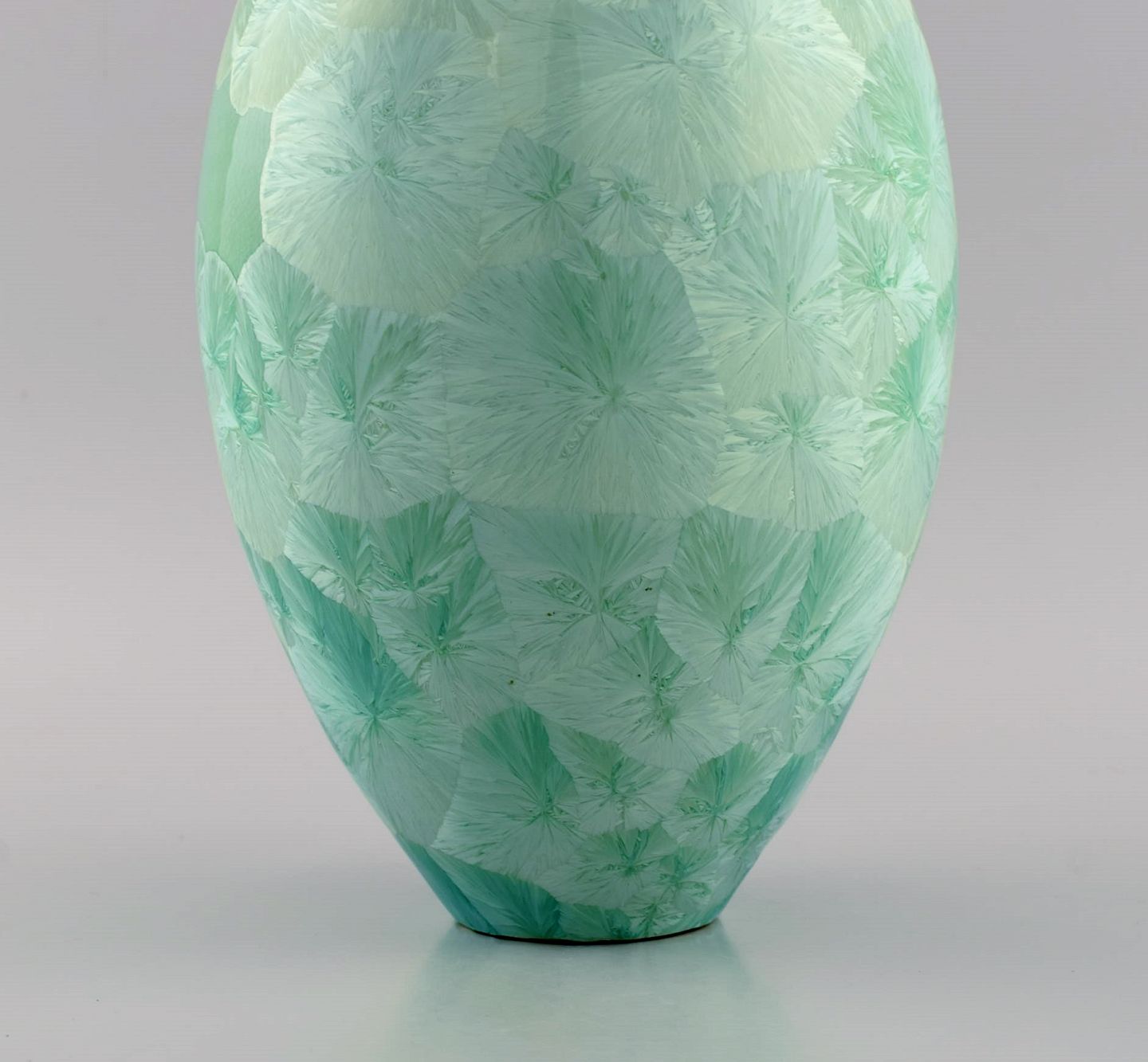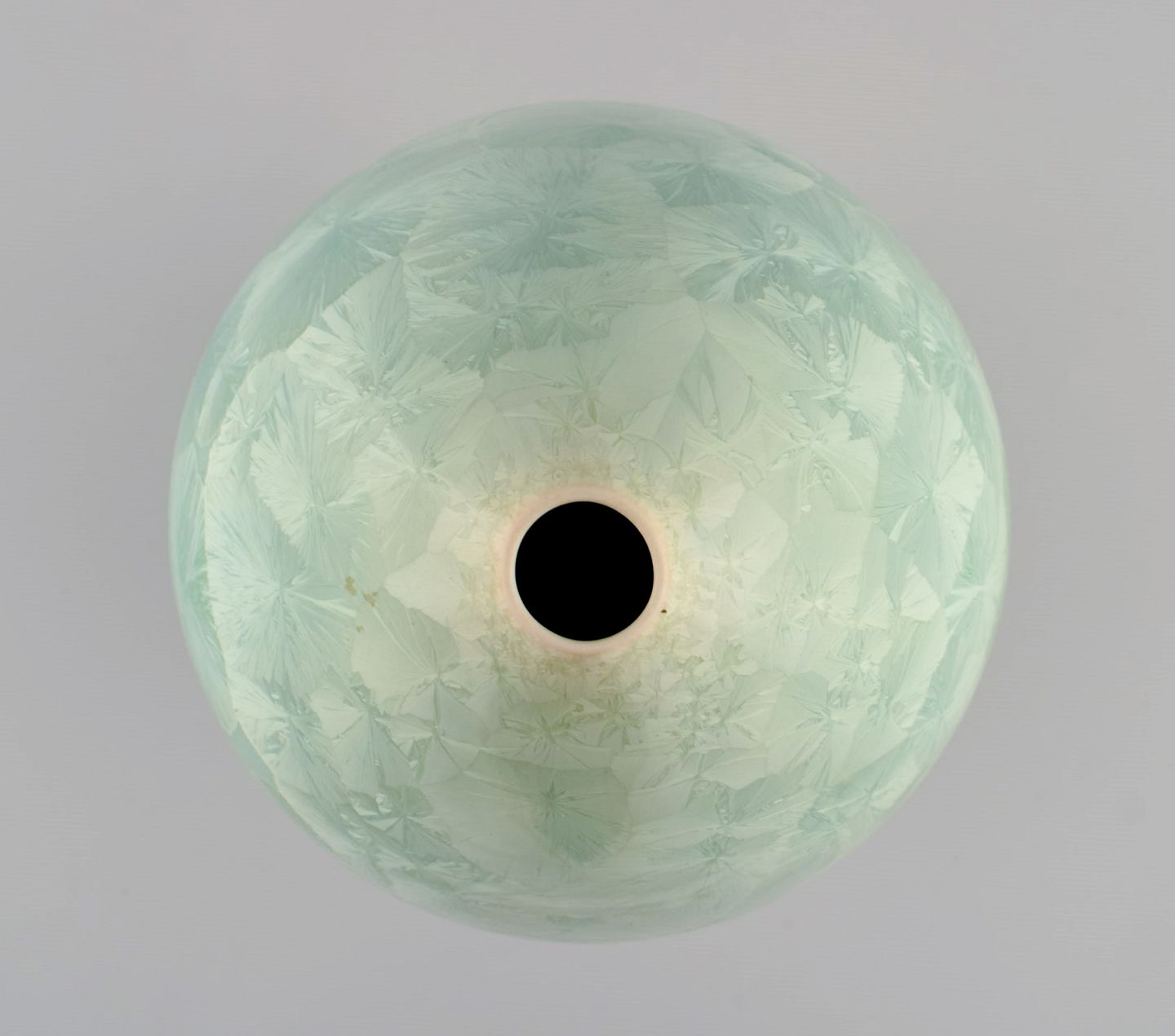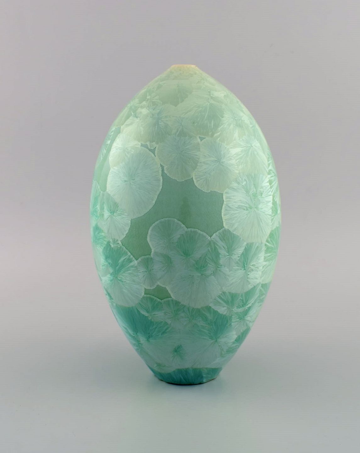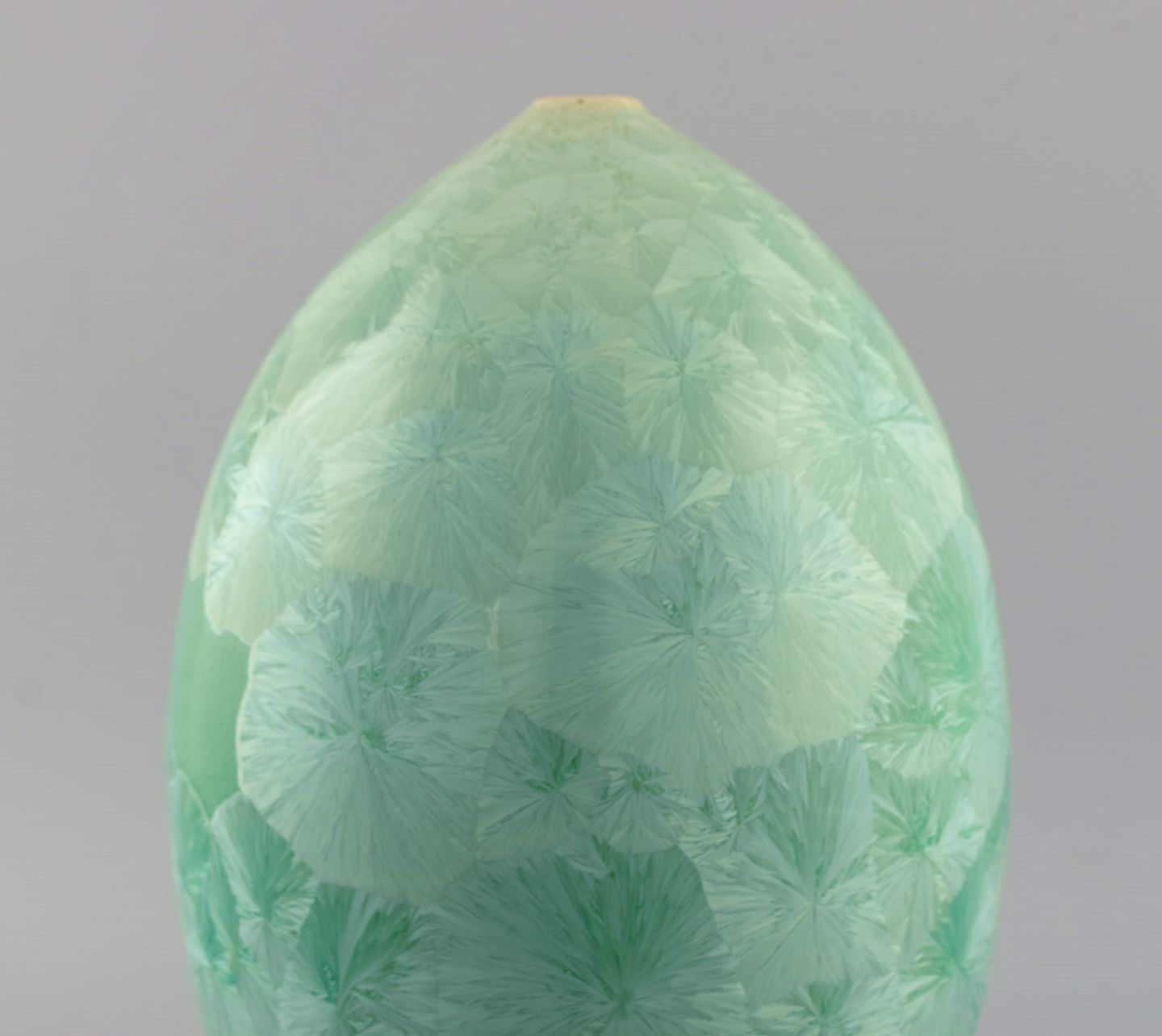 Europæisk studiokeramiker. Vase i glaseret stentøj. Smuk krystalglasur i turkis nunacer. Sent 1900-tallet.