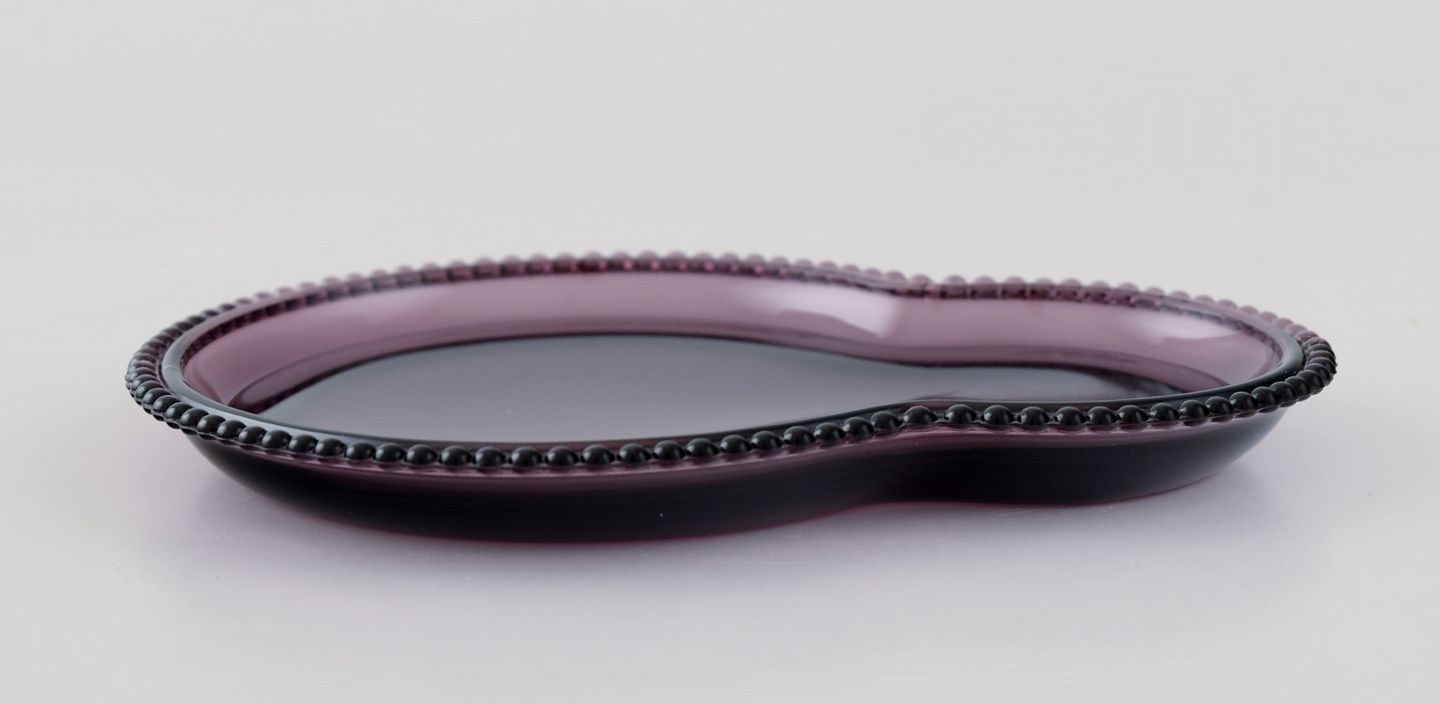 Skandinavisk glaskunstner. 12 sjældne tallerkener i lilla kunstglas. 1960/70'erne.