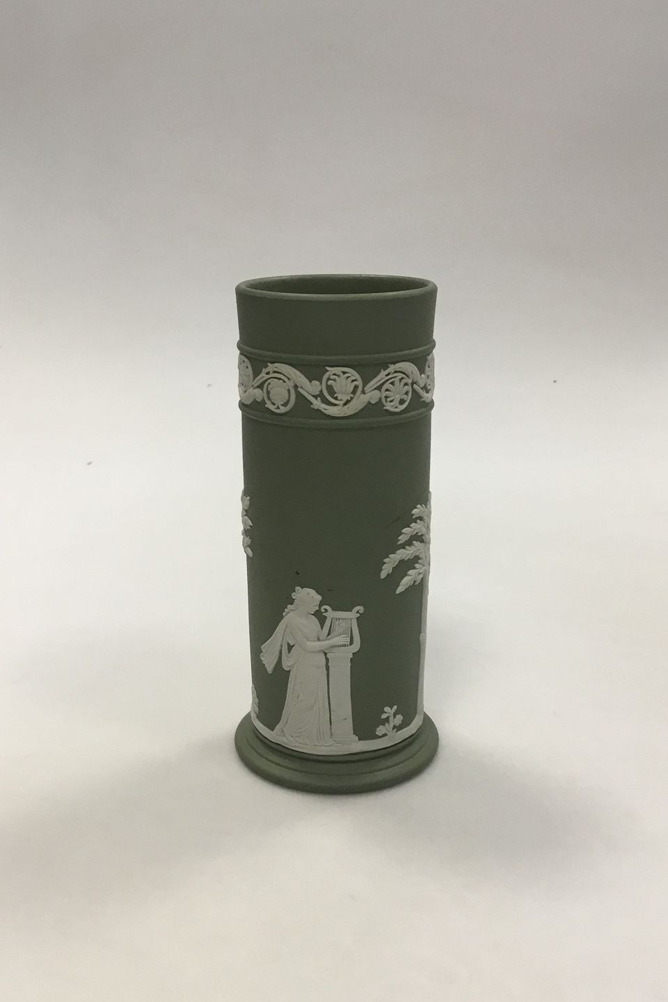 Wedgewood Cylindrisk vase dekoreret med lyrespillende gudinder. Måler 16,5 cm(6 1/2 in.)