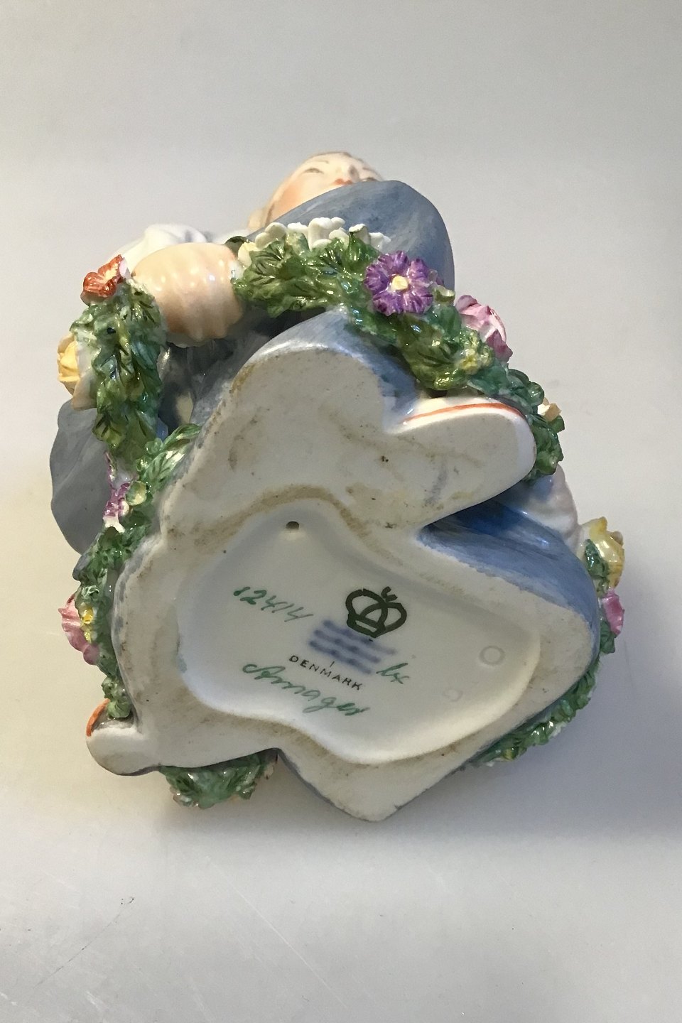 Royal Copenhagen Overglasur Figur Amager Dreng nr. 12414. Måler 15cm(5 29/32 in) har nogle små afslag på blomster.Se venligst detalje foto.