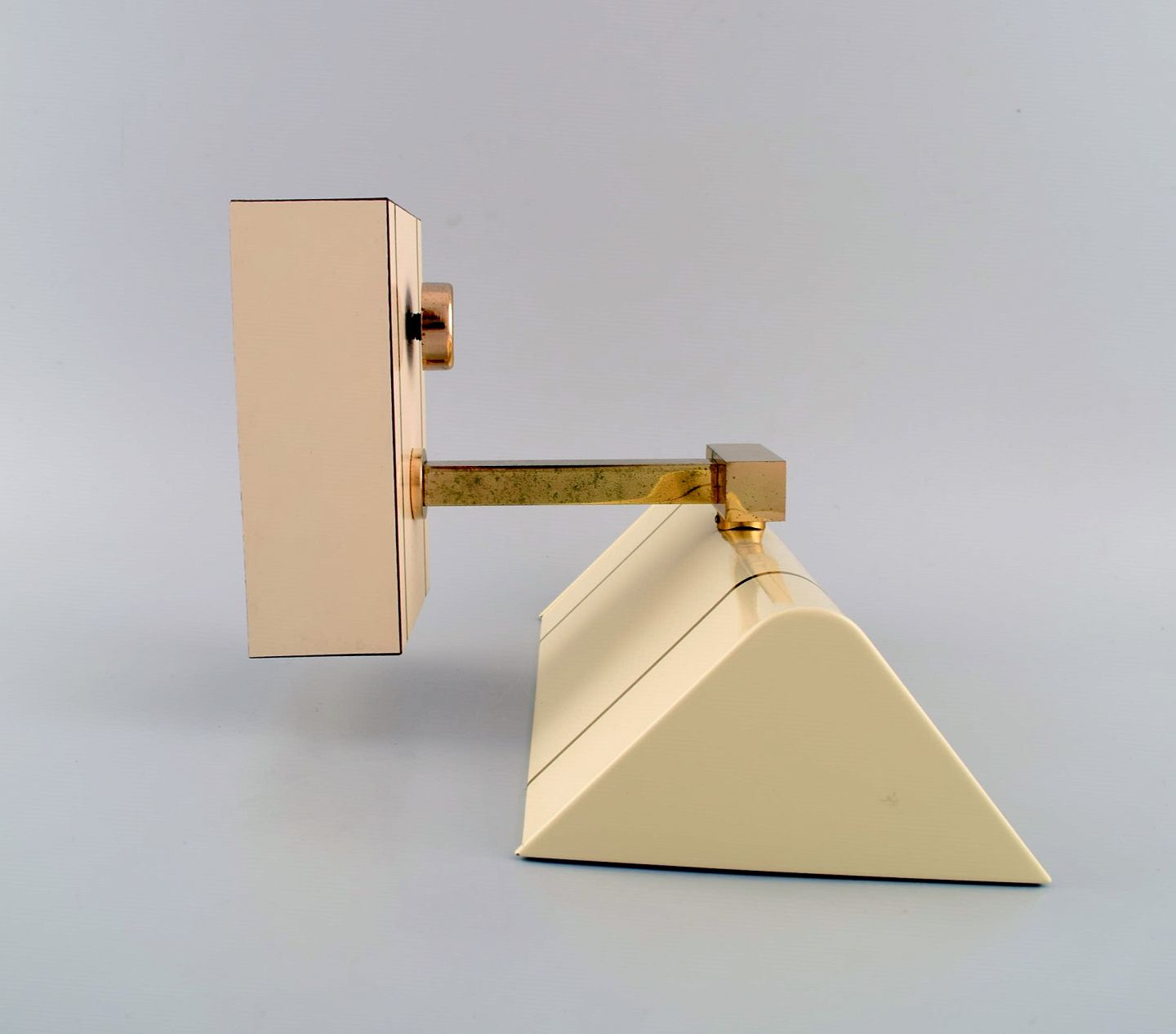 Art deco væglampe i cremefarvet lakeret metal og messing. 1960/70'erne.