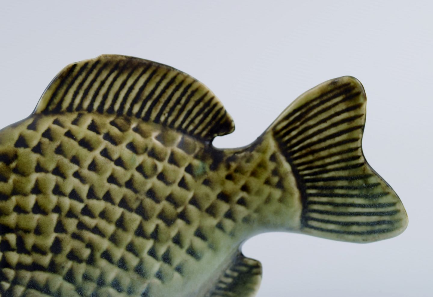 Sven Wejsfelt (1930-2009) for Gustavsberg. Unika Stim fisk i glaseret keramik. Aborre. 1980'erne.