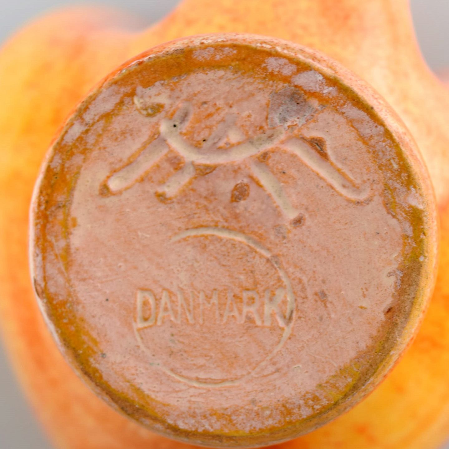 Kähler, HAK. Flødekande i glaseret stentøj. Smuk orange uranglasur. 1940'erne.