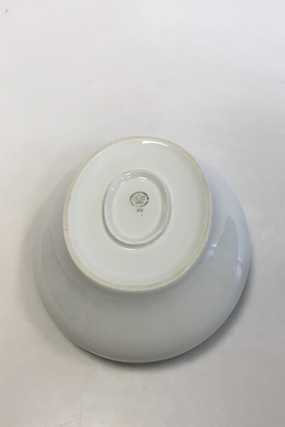 Bing & Grondahl White plain pattern with gold Oval Bowl No 312. Measures 21 cm x 19 cm / 8 17/64 in. x 7 31/64 in.