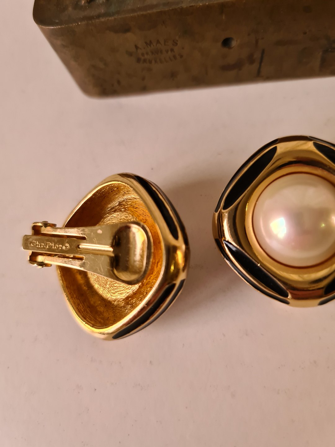 Chr. Dior vintage ear clip in gold-plated metal with emitted pearl