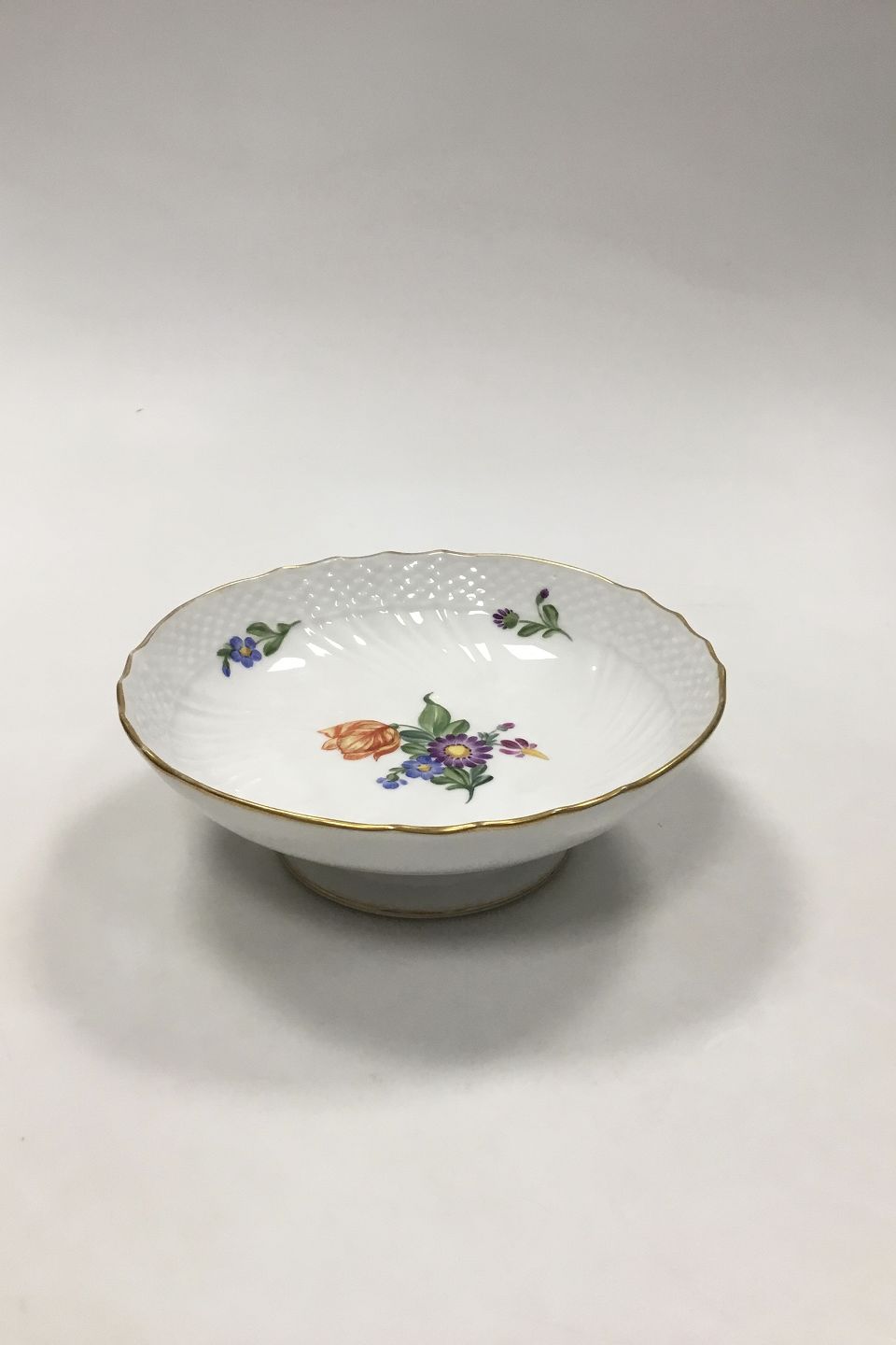 Royal Copenhagen Saksisk Blomst Let Kageskål på Lav Fod No 1532