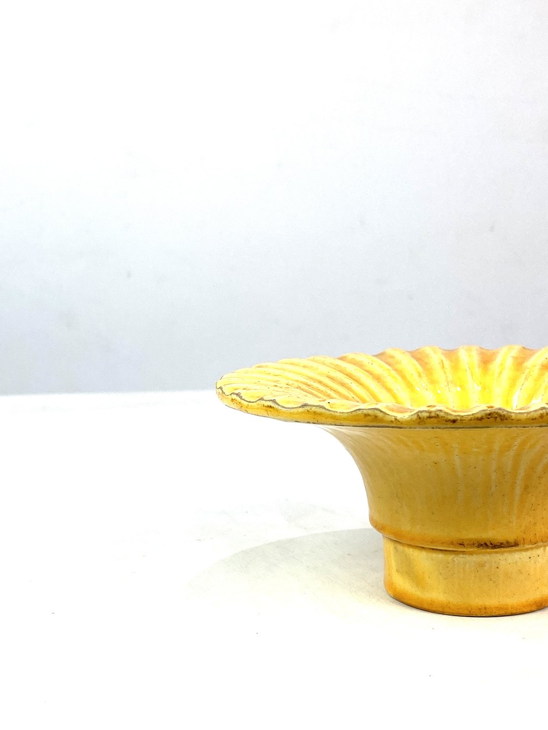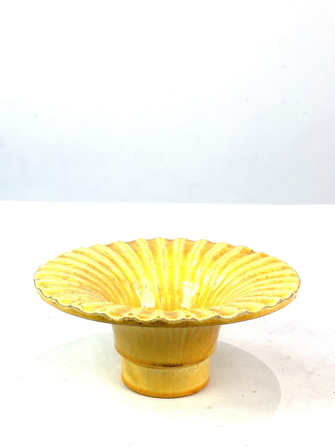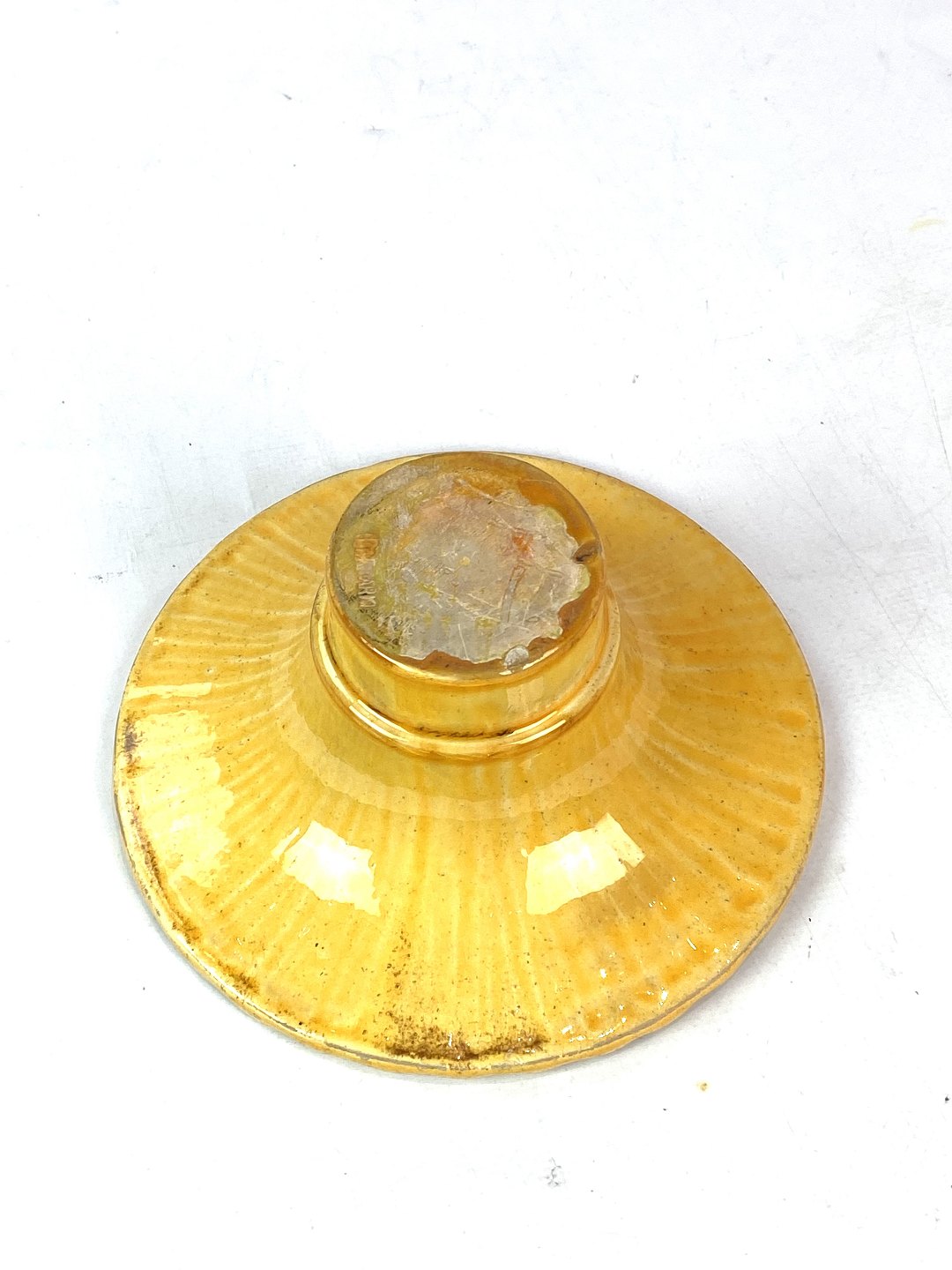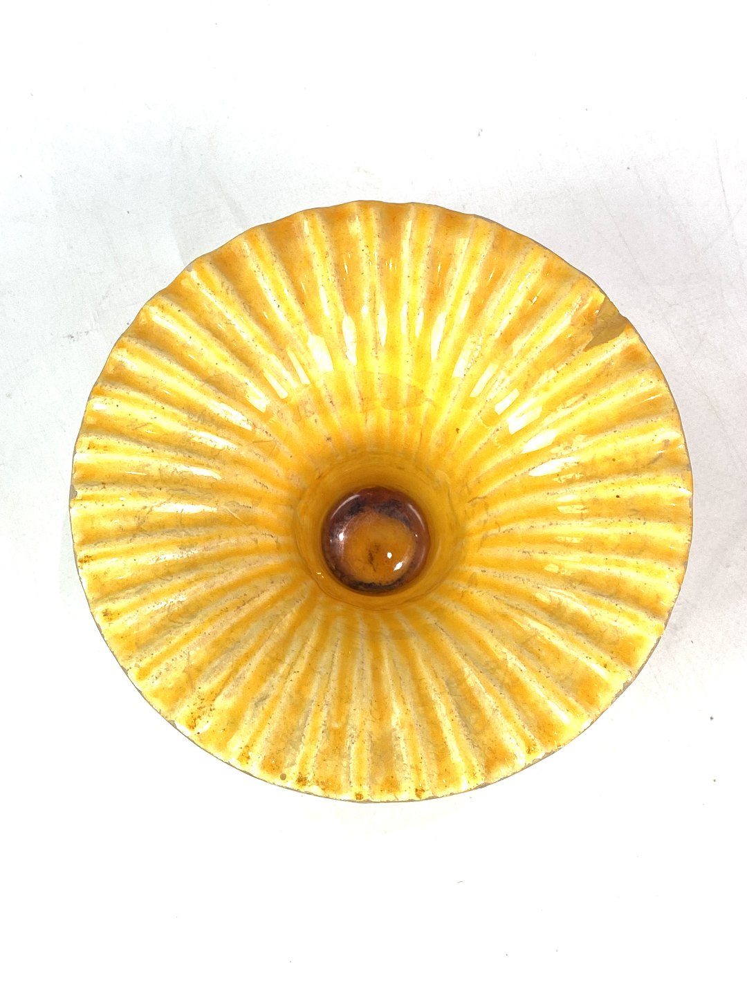 Ceramic dish with a yellow glaze by Herman A. Kähler from the 1940s.