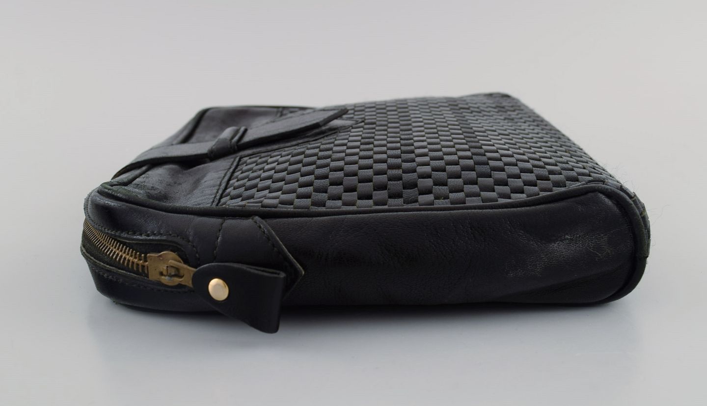 Vintage Yves Saint Laurent selskabstaske i sort læder med flettet mønster. 1960/70'erne.