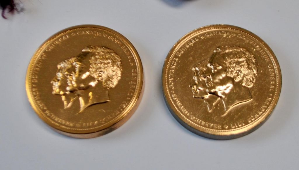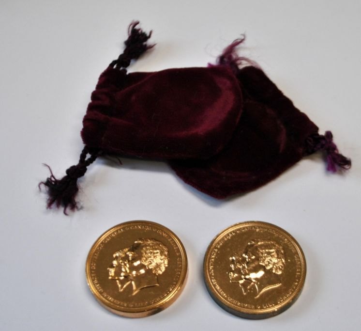 Medaljer for "Visit to the Nordic countries", Canada, maj 1981. Messing. Med portrætter af Edward og Lily Schreyer. 2 stk. i velour poser. Dia.: 3,5 cm.