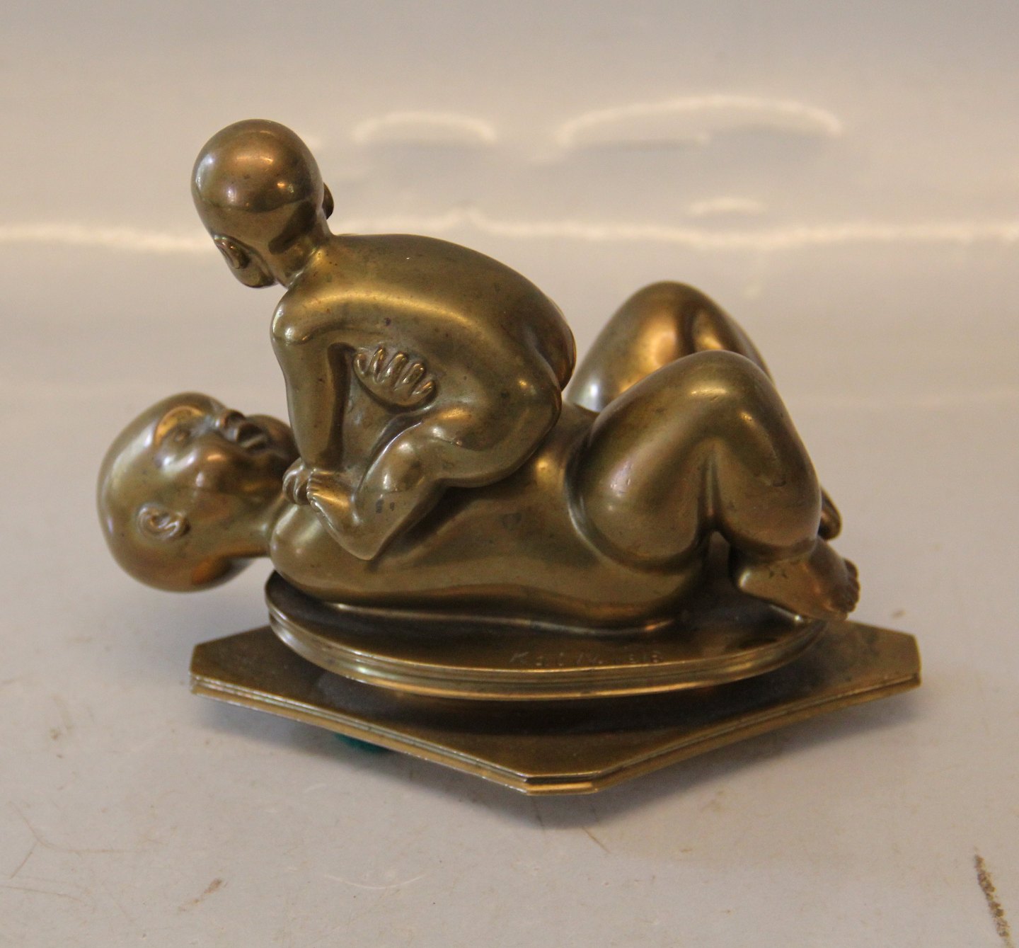 Kai Nielsen no 18 Lueforgyldt Bronze Dreng med baby 13.5 x 16 cm