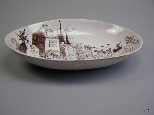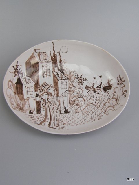 Bjørn Wiinblad Ovalt Fad Unica 1948 H: 7 cm. L: 38 cm. B: 30 cm.
