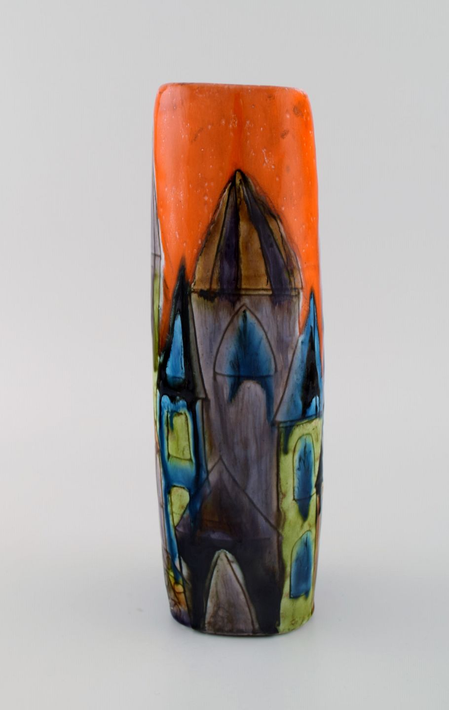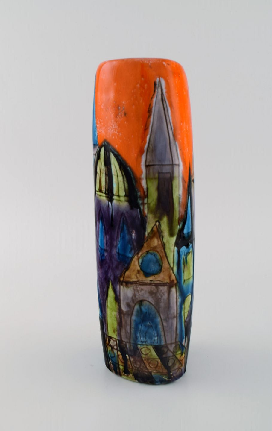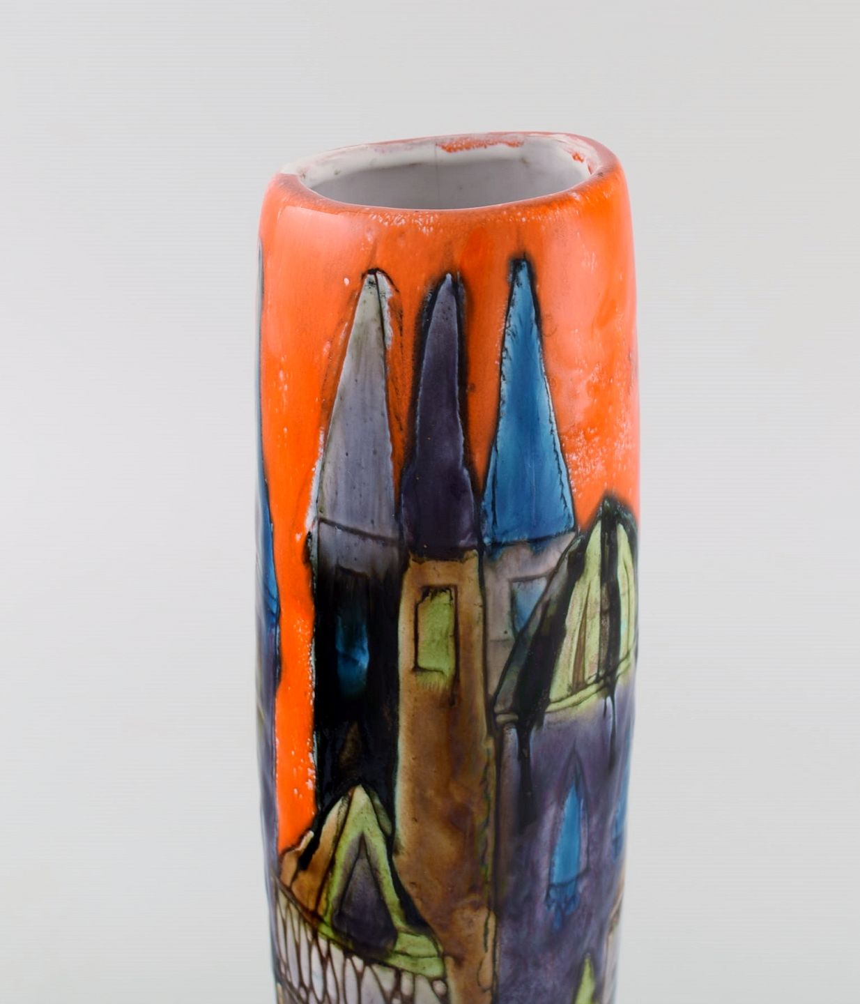Elio Schiavon (1925-2004), Italy. Unique vase in glazed ceramics with hand-painted city motif. 1960s.