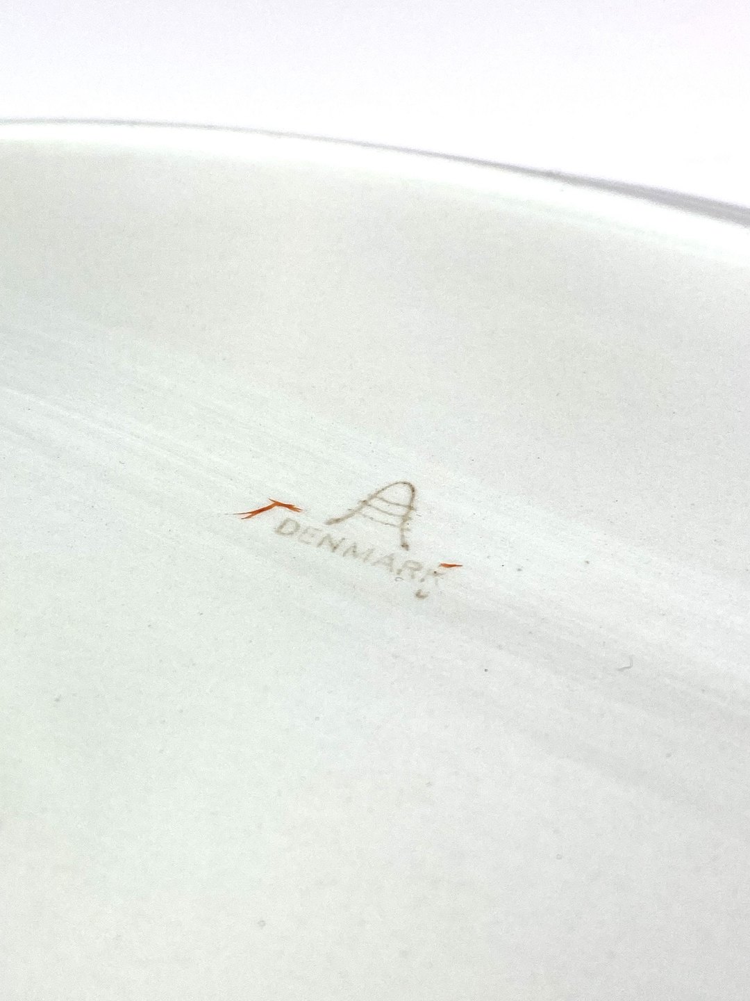 Porcelænsfad med rød kant af Aluminia.