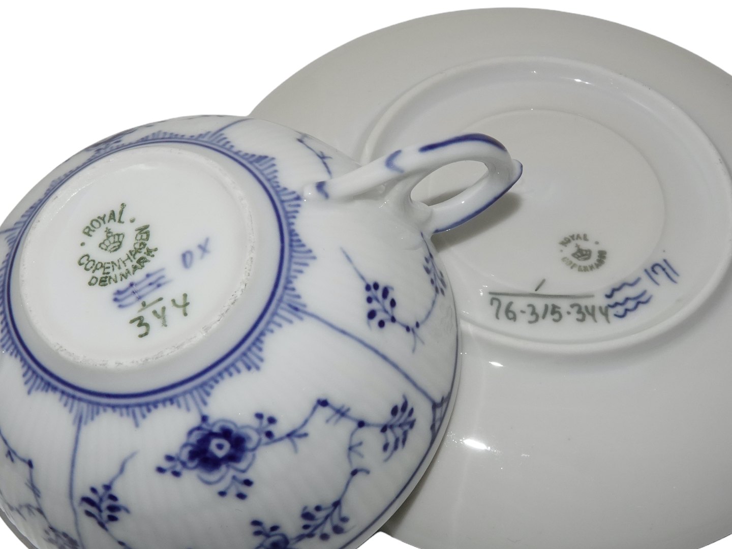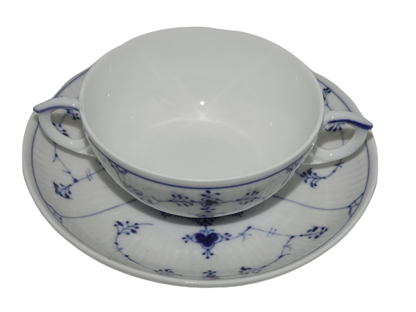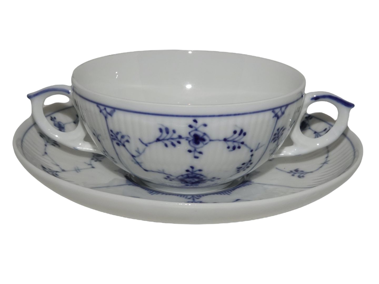 Royal Copenhagen Musselmalet Riflet, lille bouillionkop med underkop. Til denne størrelse findes der ikke låg.