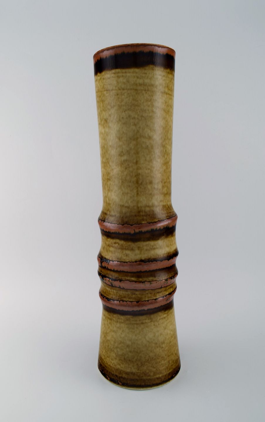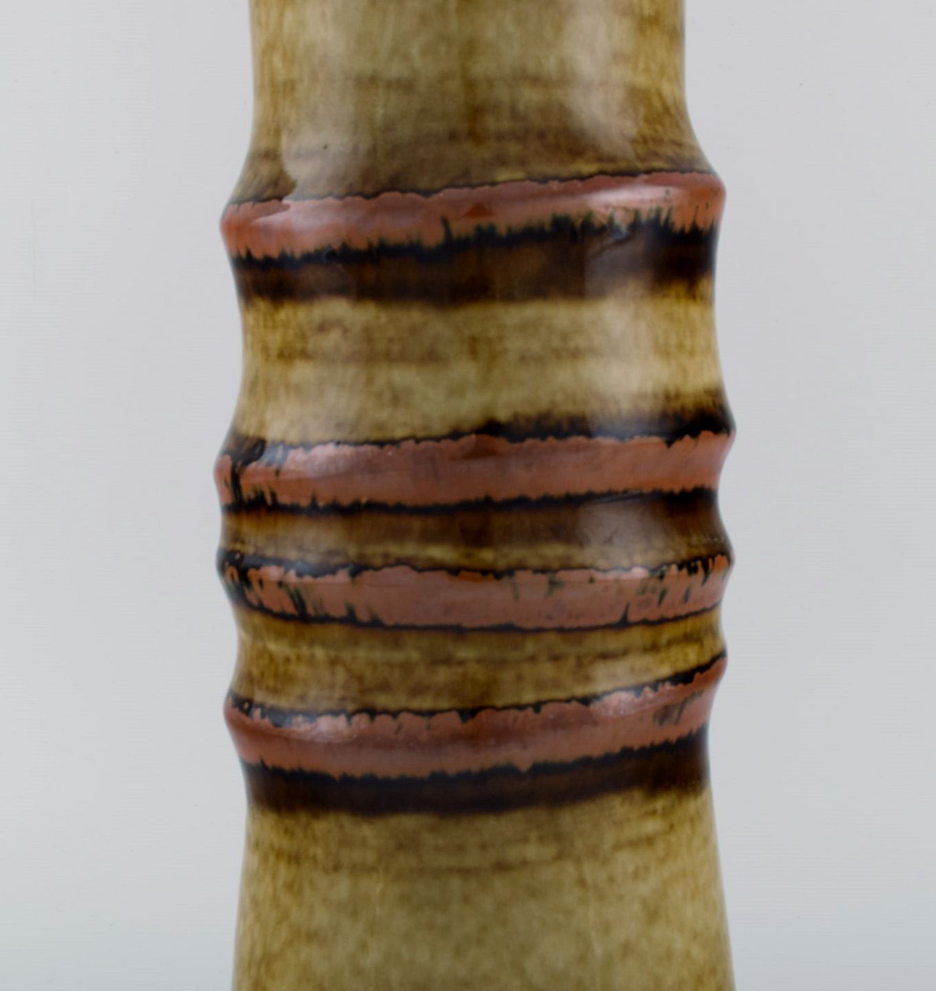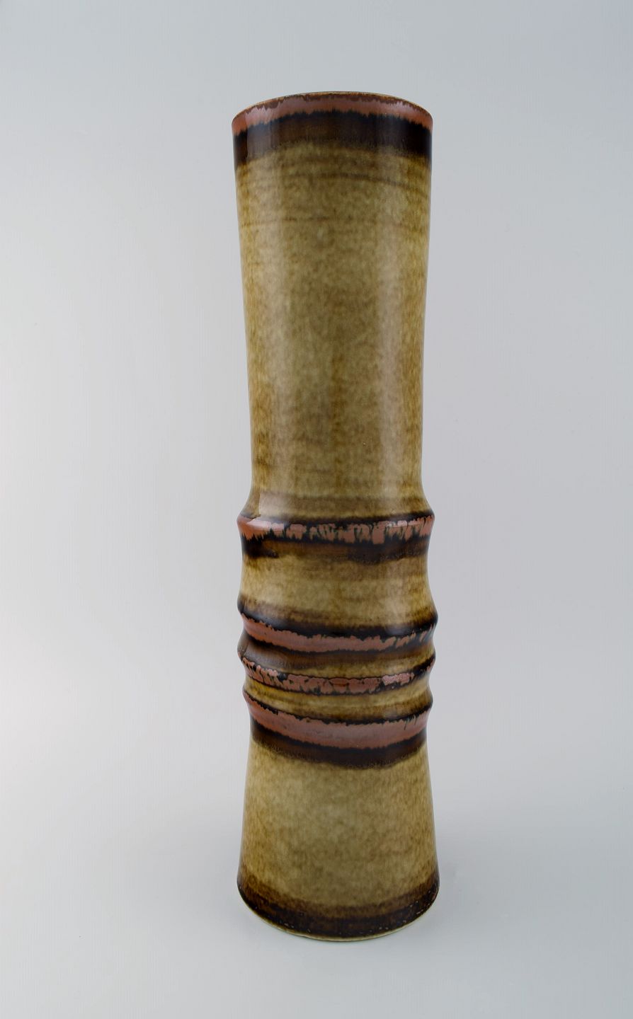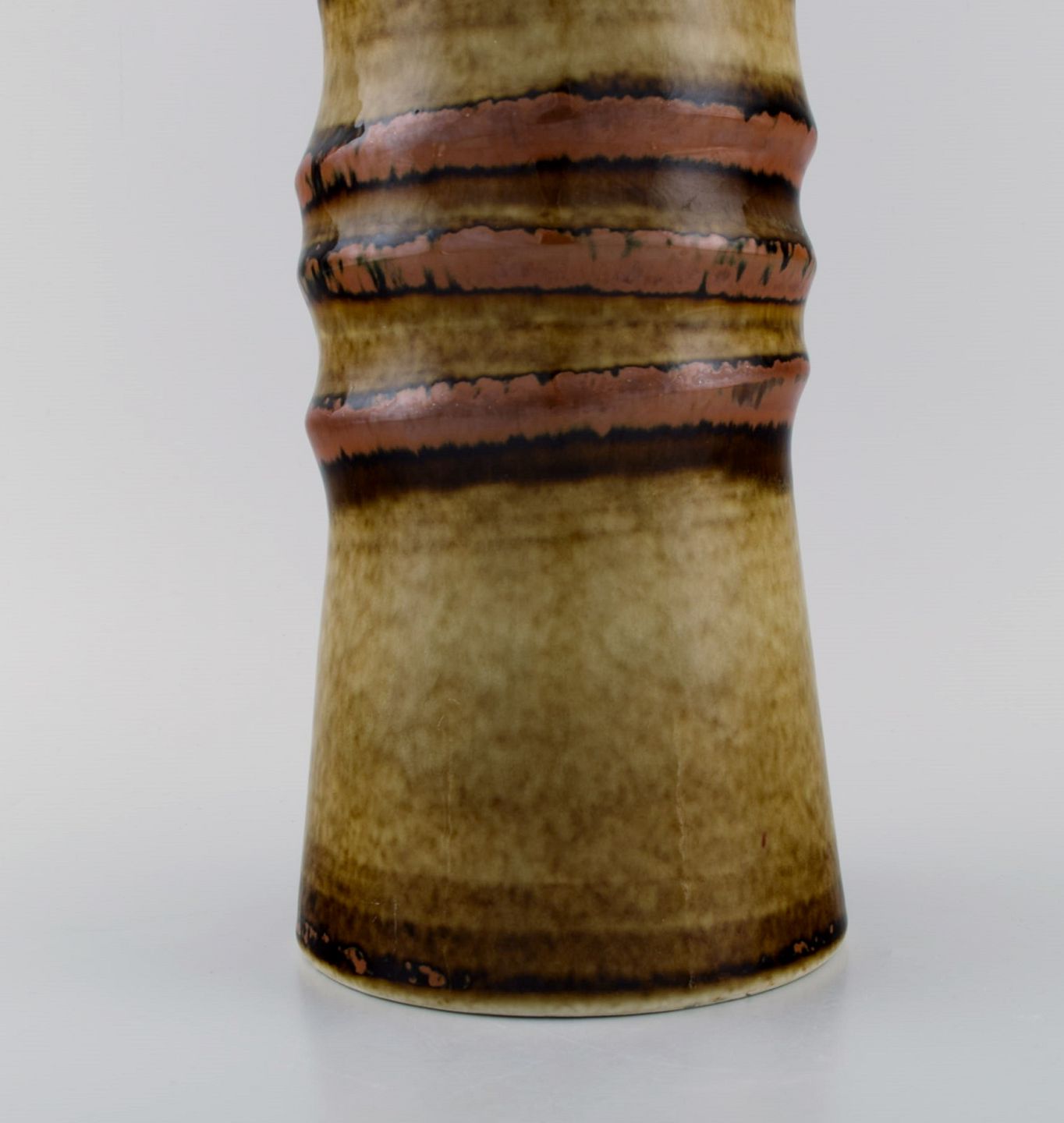 Olle Alberius for Rörstrand. Gulvvase i glaseret keramik. Smuk glasur i brune og lyse jordnuancer. 1960'erne.