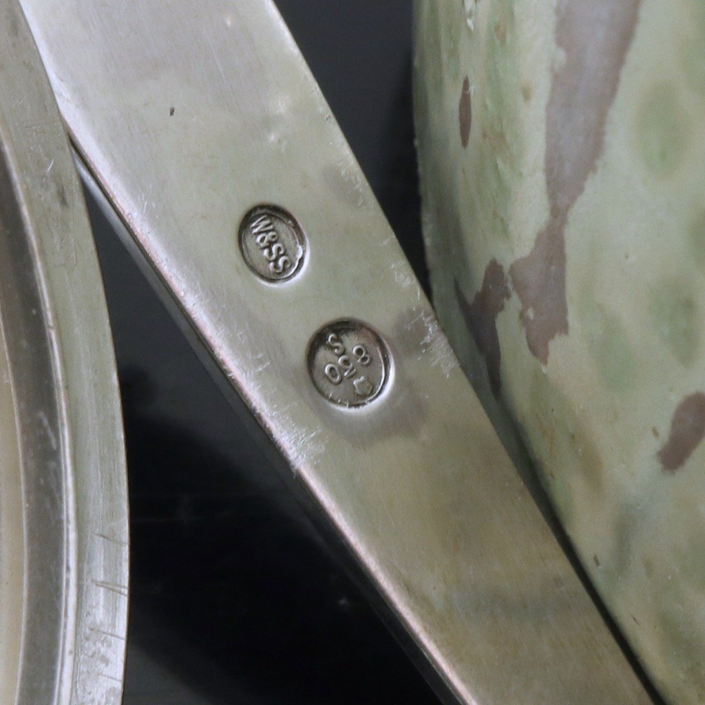 Arne Bang - Hugo Grün. Krukke i stentøj med låg og ske i sølv.