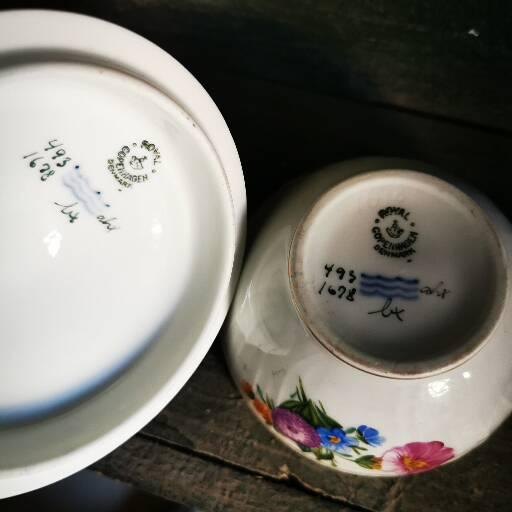 Royal Copenhagen Saxisk Blomst sukkerskål med låg