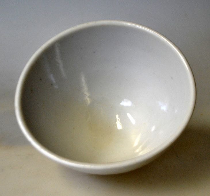 Sjælden latex gummi opsamler kop af porcelæn, ca. 1940 fra Firestone Plantagen, Liberia. H. 8,5 cm. Dia: 12 cm På siden teksten Firestone D - 1 (område). Firestone Plantagen i Harbel, Liberia, er verdens største sammenhængende gummiplantage, etableret i 1926. Ejet af Bridgestone, USA. Proveniens: Direktøren.
