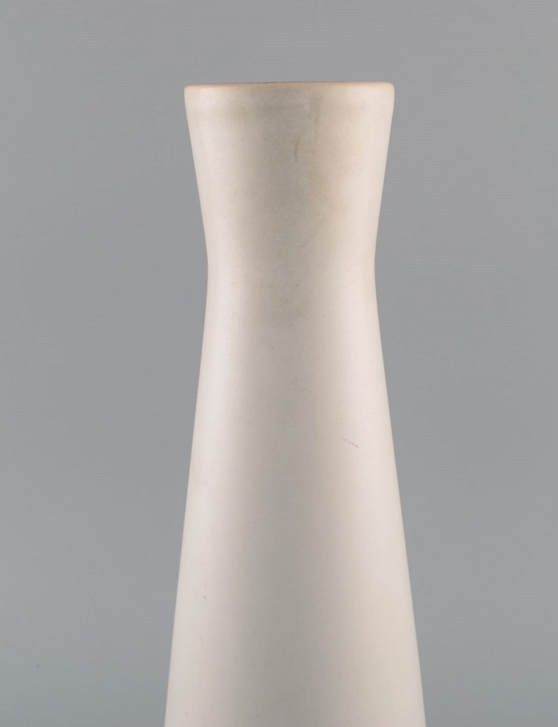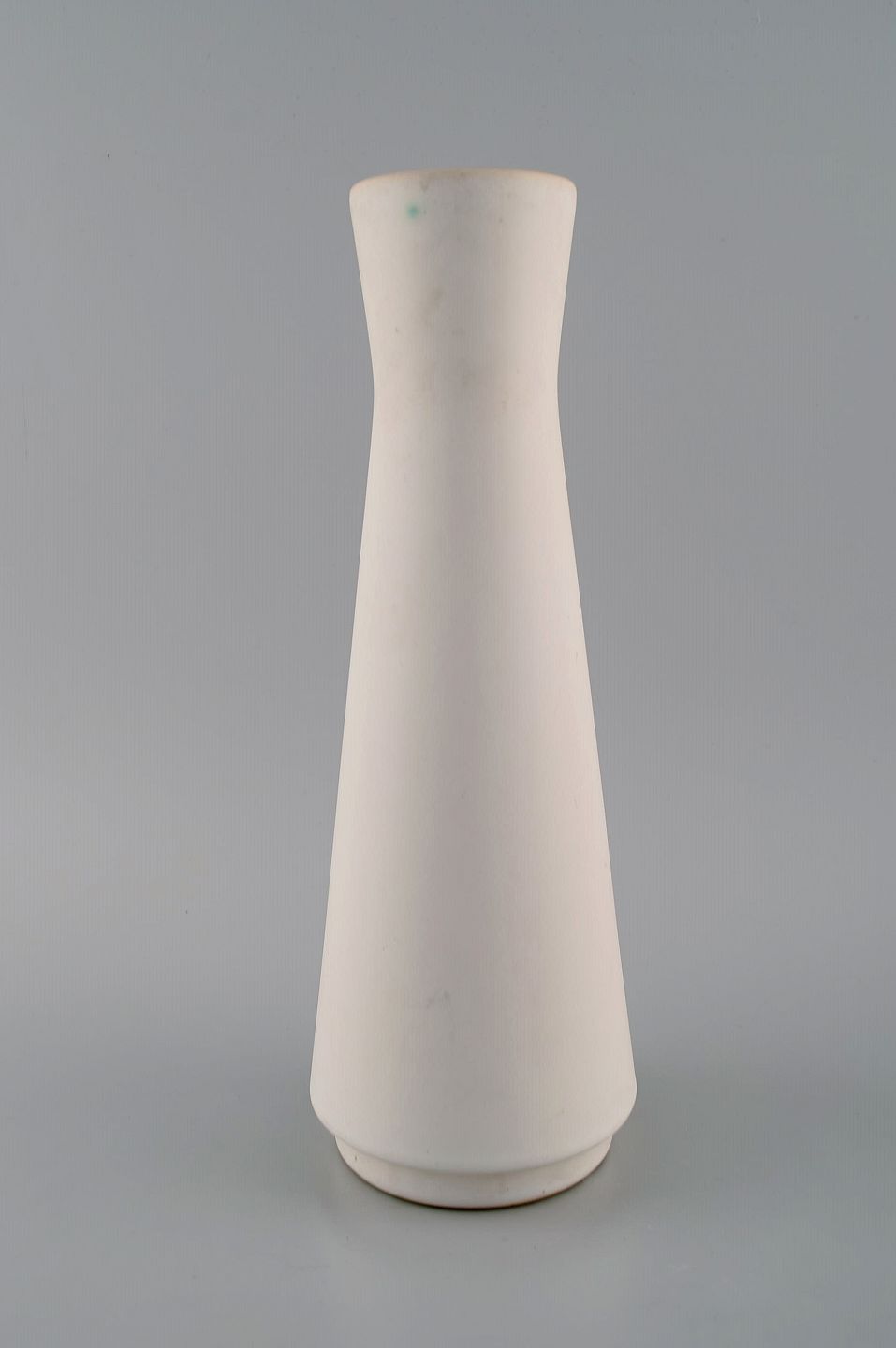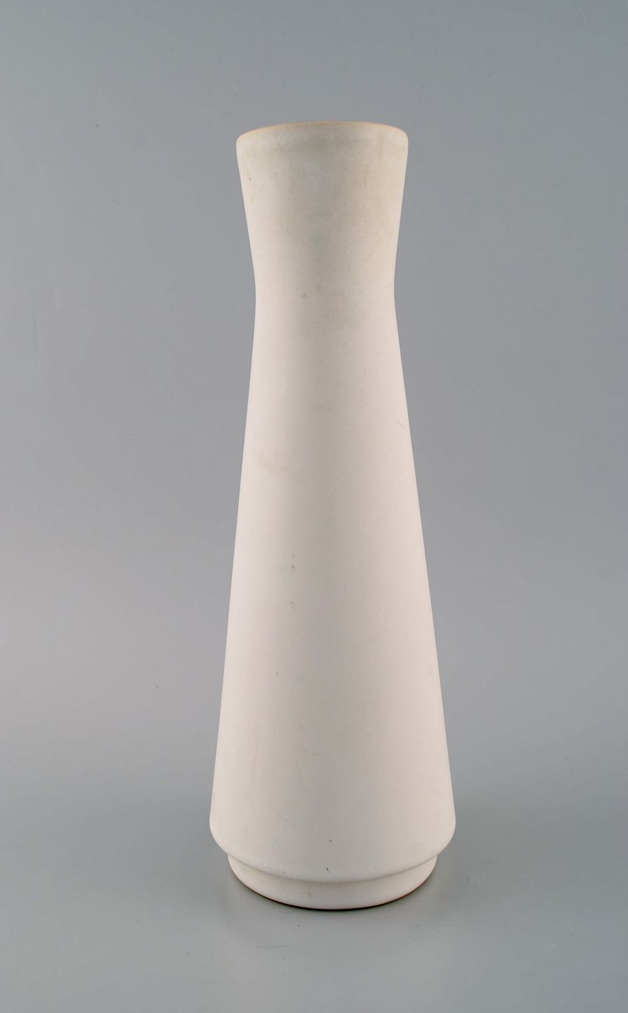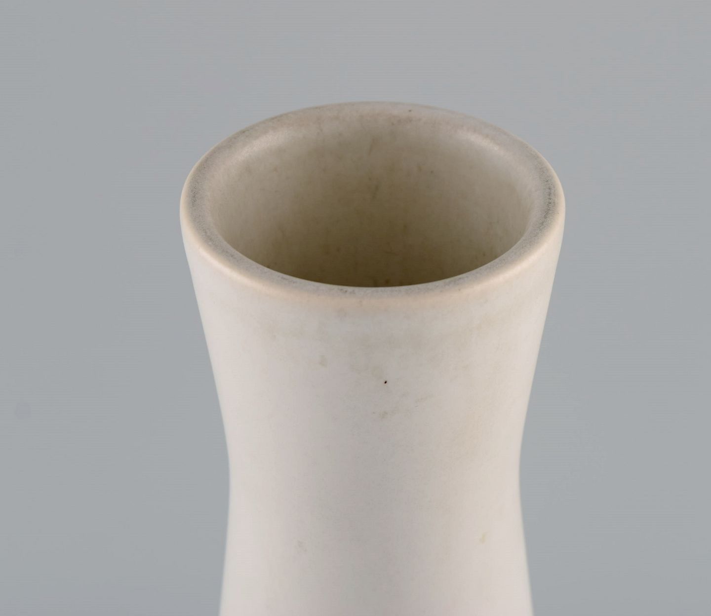 European studio ceramicist. Unique vase in white glazed ceramics. Clean design. 1980's.