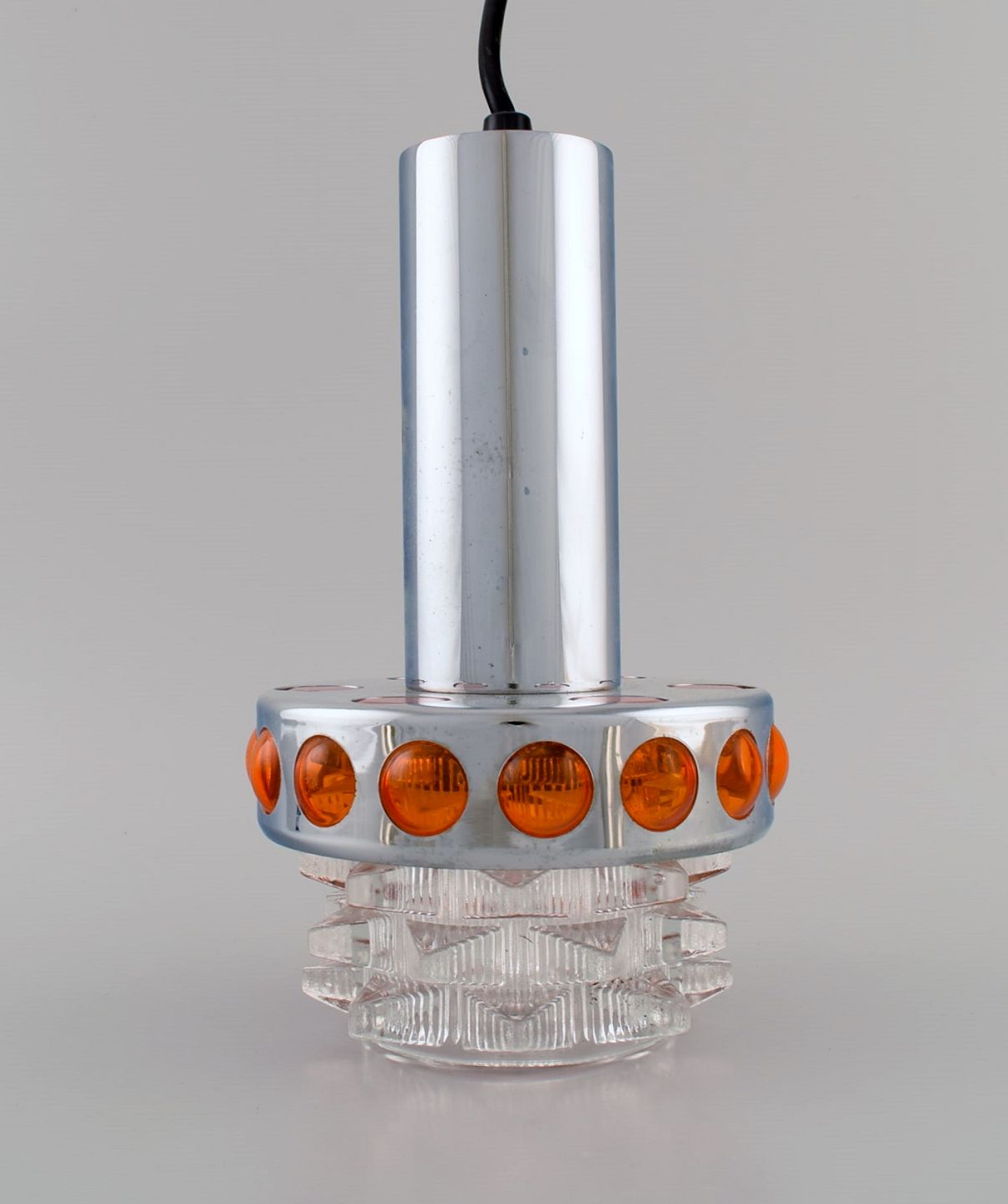 Raak, Holland. Tre loftspendler i forkromet metal og kunstglas. 1970'erne.