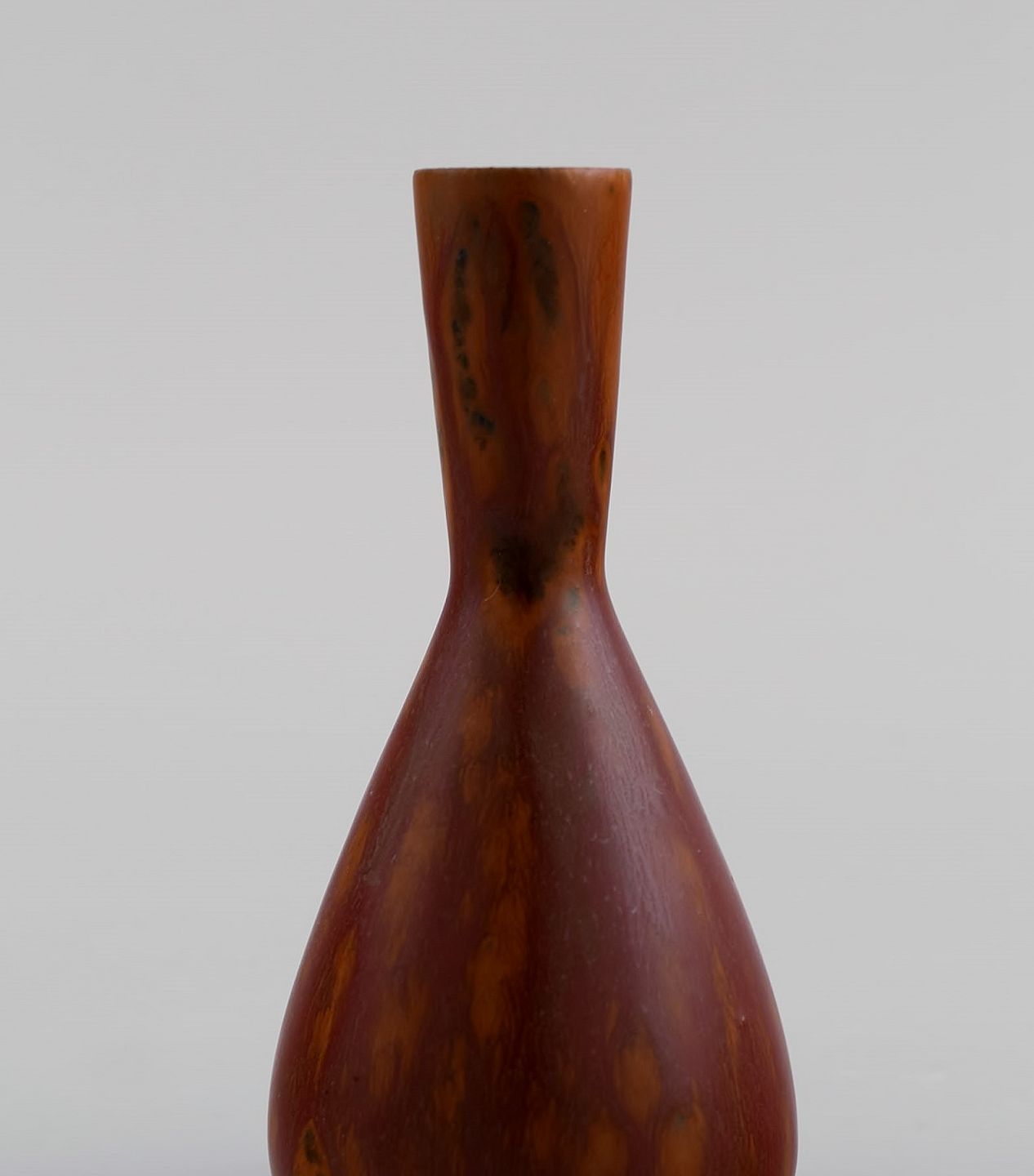 Carl Harry Stålhane (1920-1990) for Rörstrand. Vase i glaseret keramik. Smuk glasur i rødbrune nuancer. 1960'erne.
