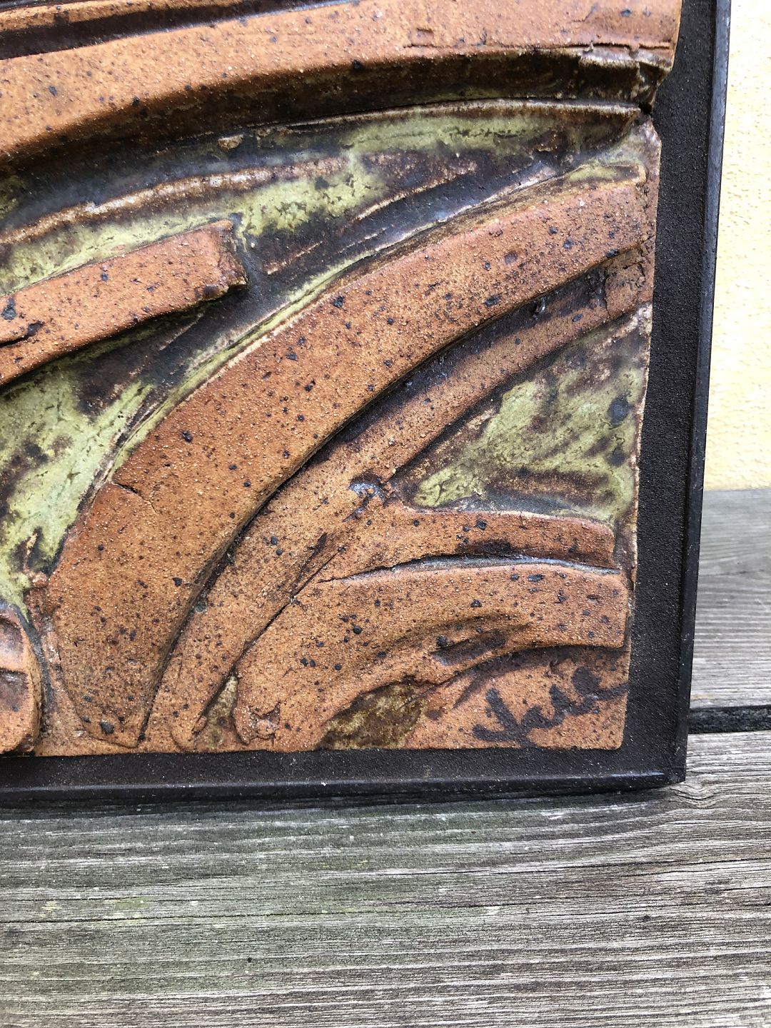 Væghængt unika relief i glaseret stentøj udført af Tue Poulsen.