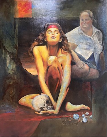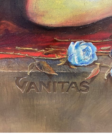 "Vanitas" Stort flot maleri i sølv svæveramme.