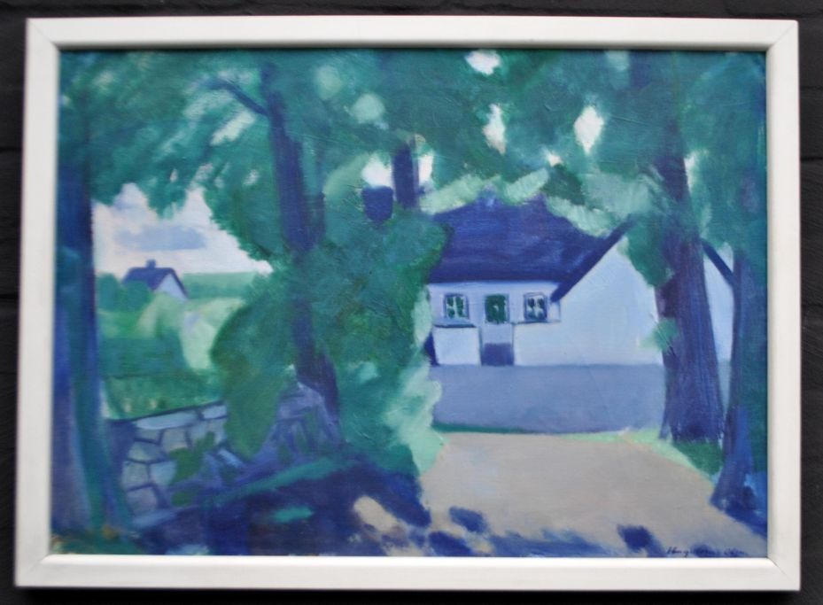 Hagedorn-Olsen, Thorvald (1902 - 1996) Danmark: En gård. Olie på lærred. Signeret. 45 x 64 cm.